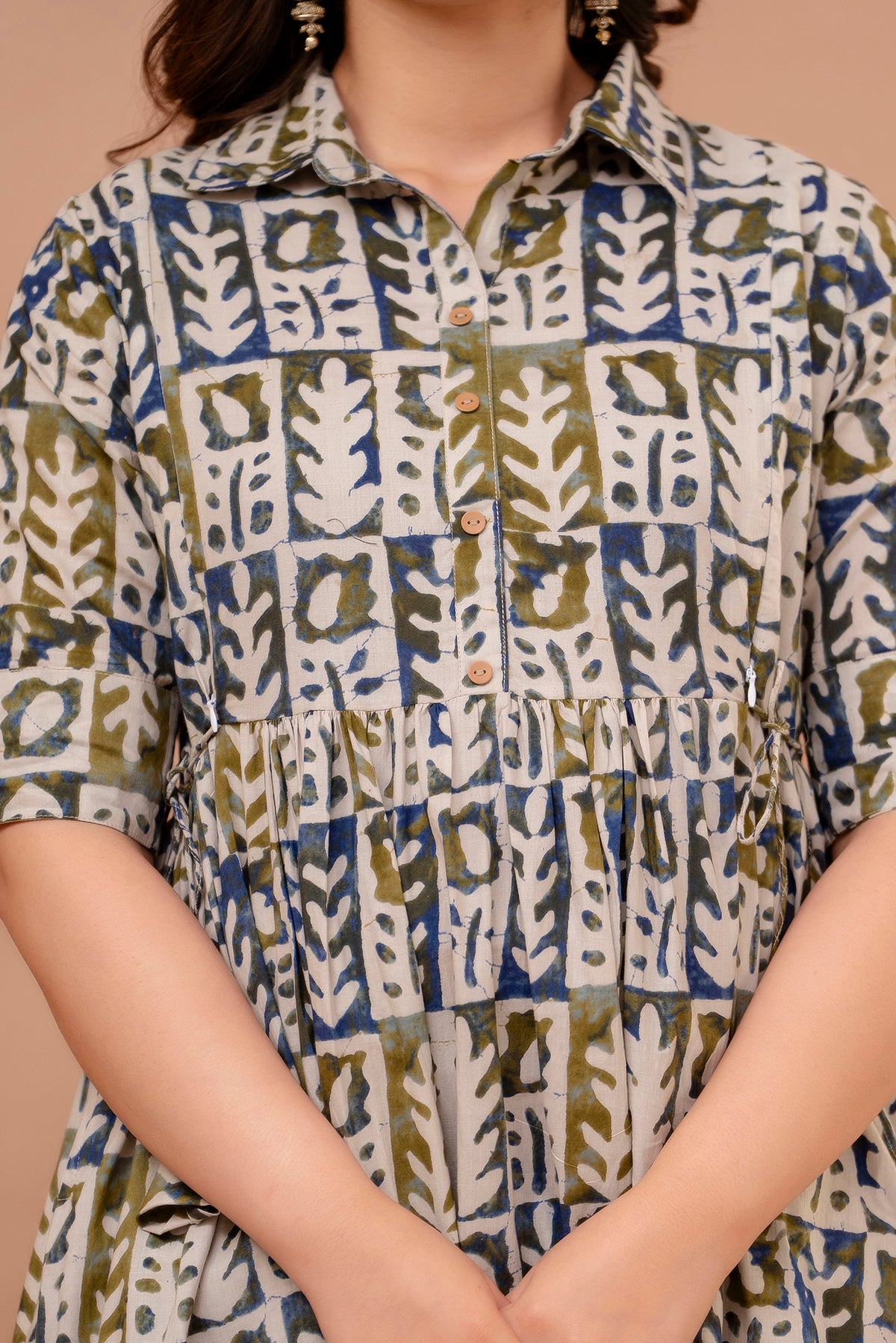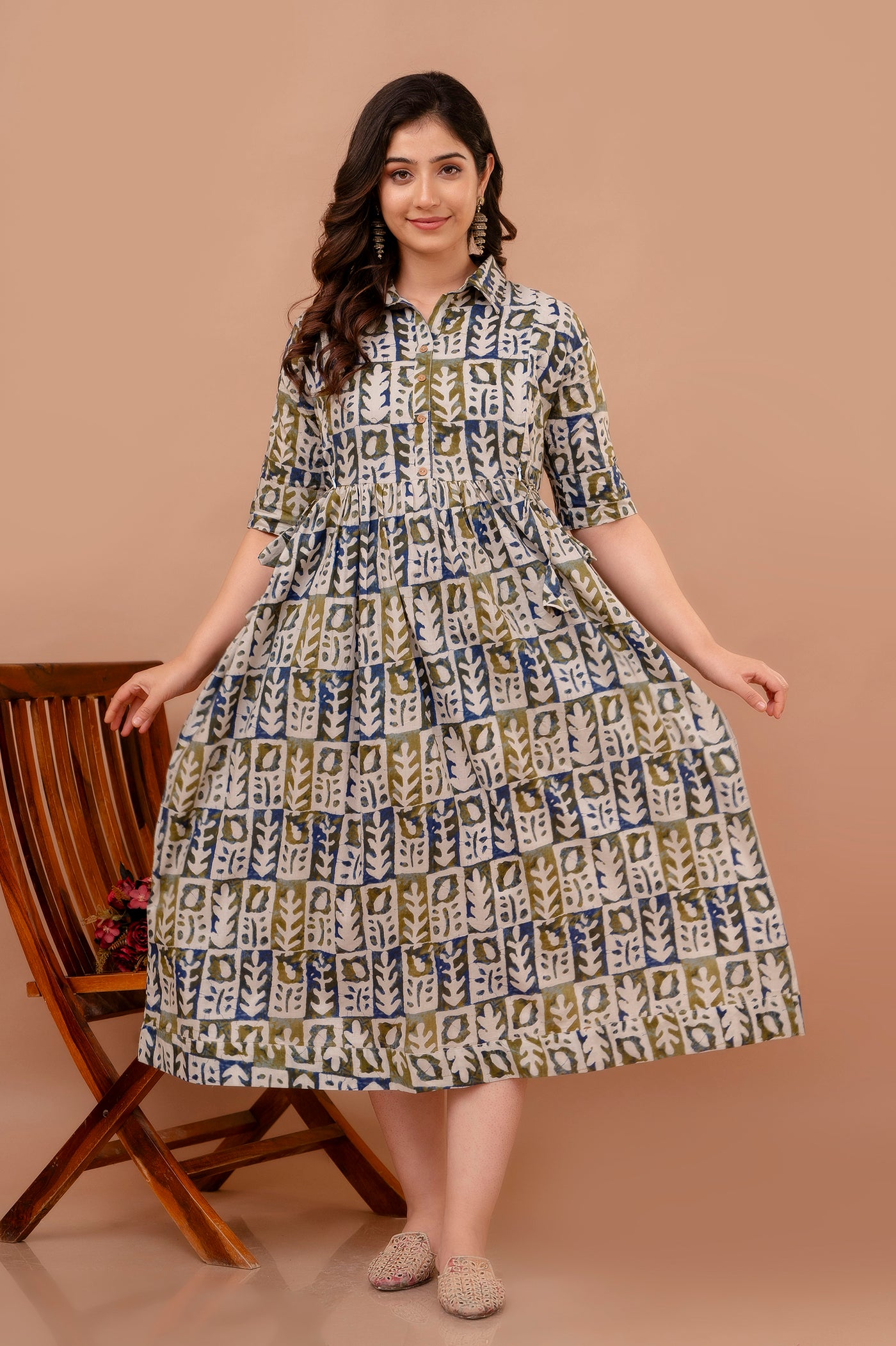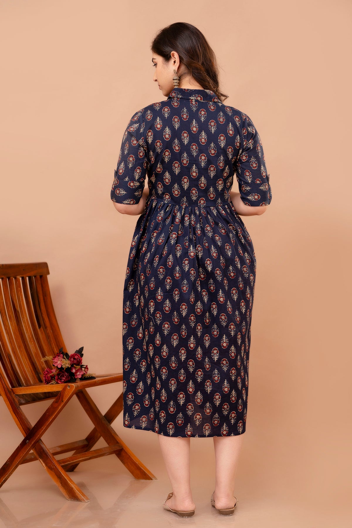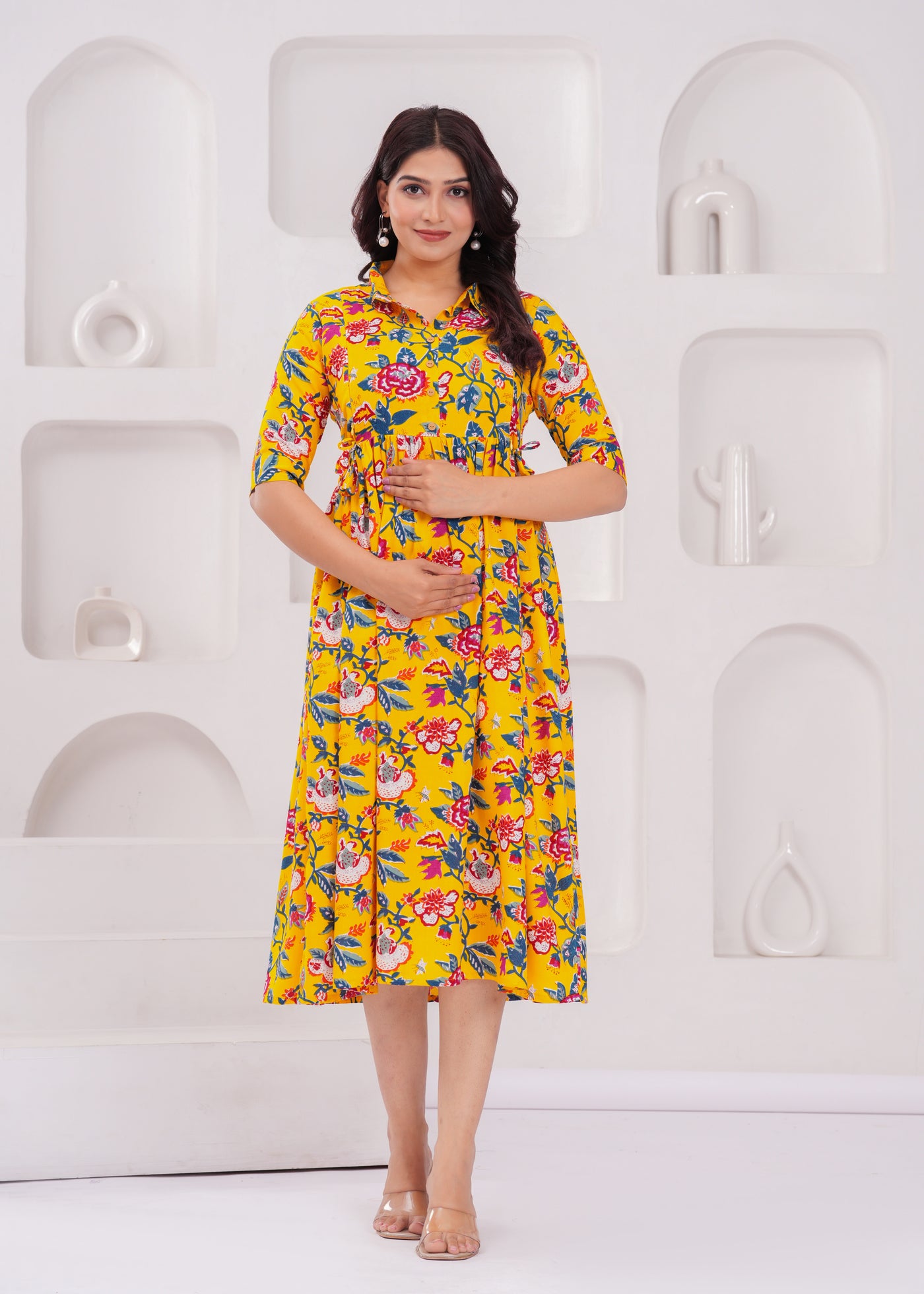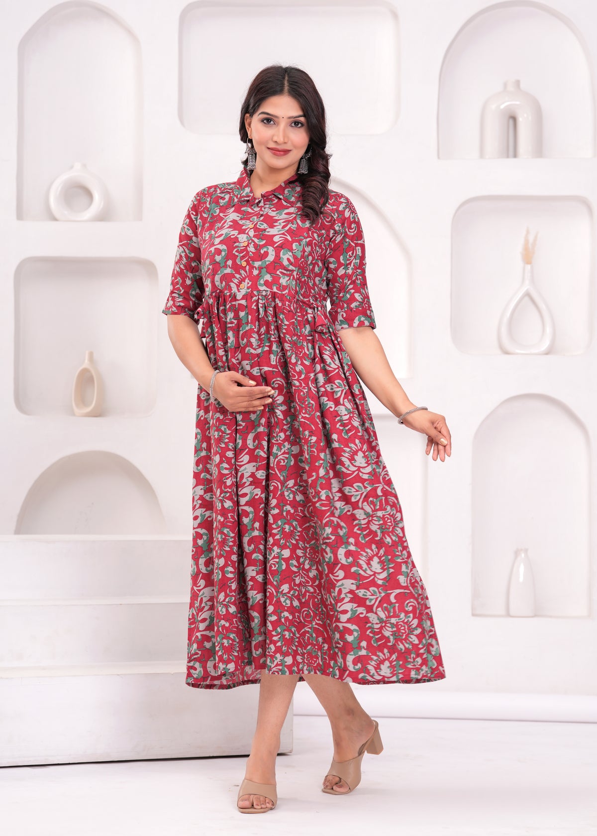 Beige Printed Pure Rayon Cotton Collar Maternity And Feeding Kurta