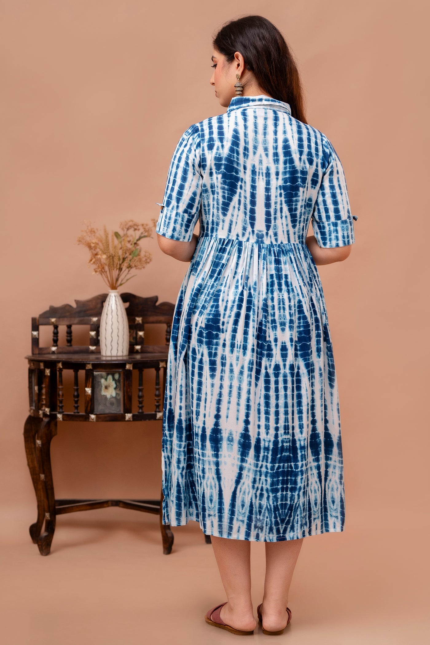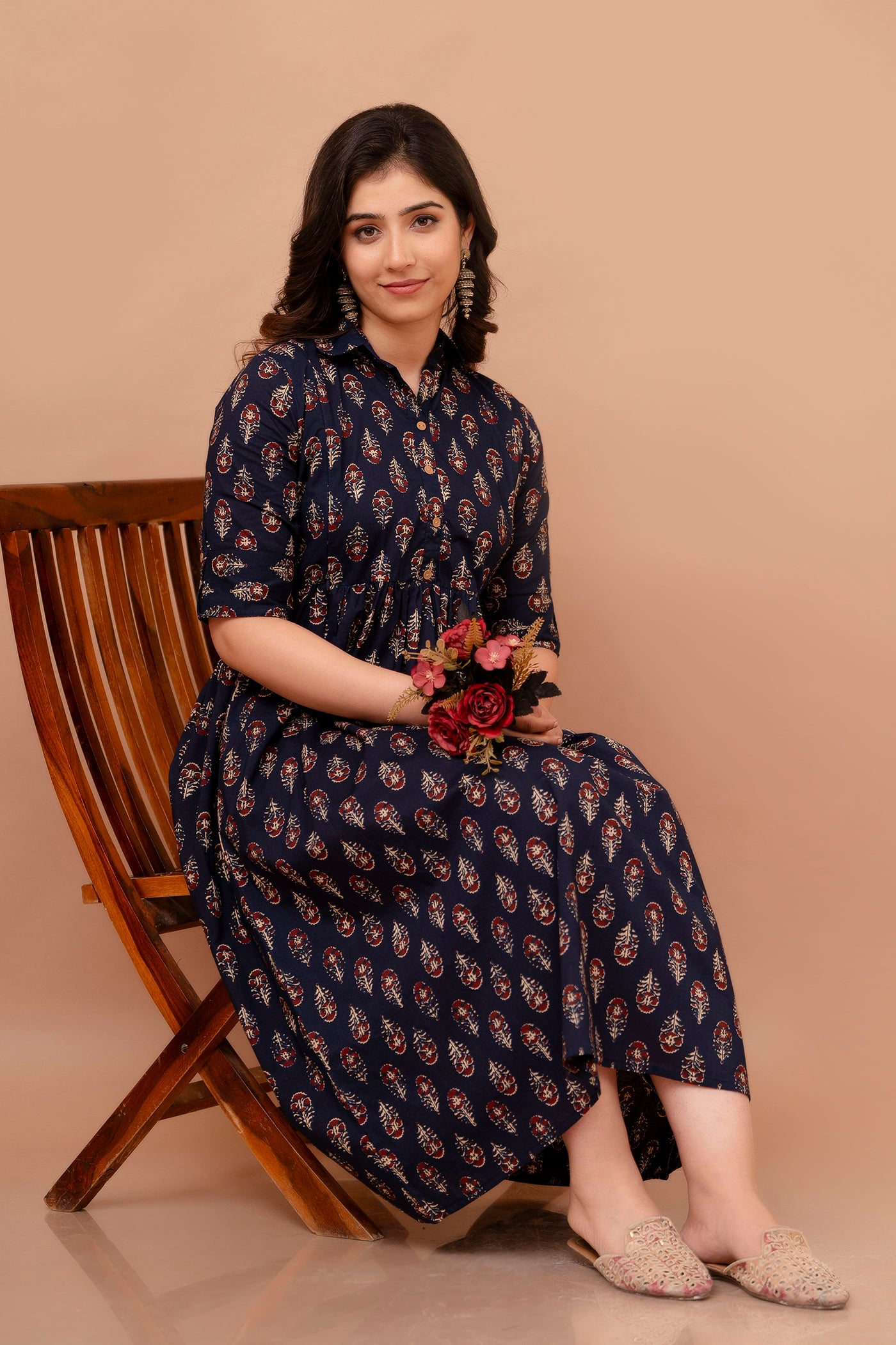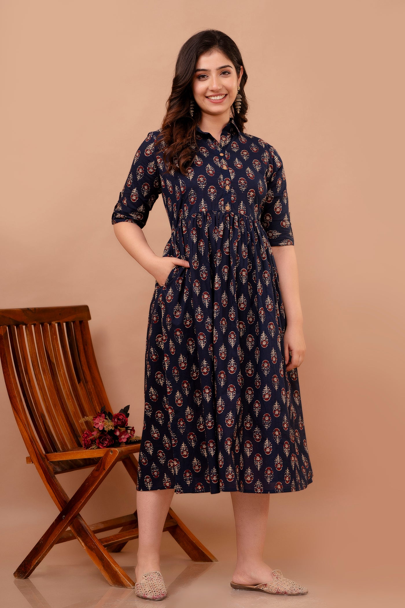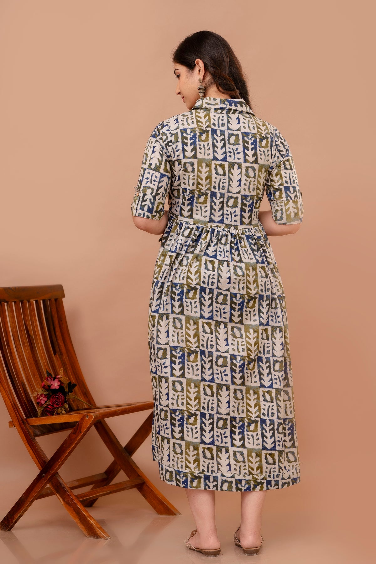 Beige Printed Pure Rayon Cotton Collar Maternity And Feeding Kurta