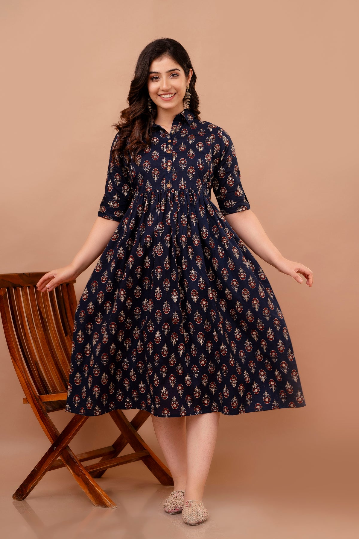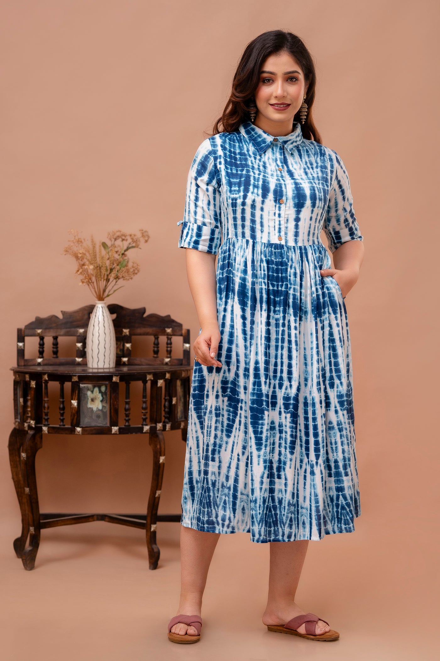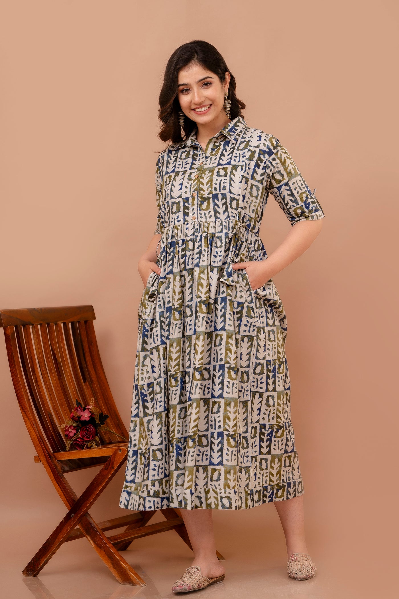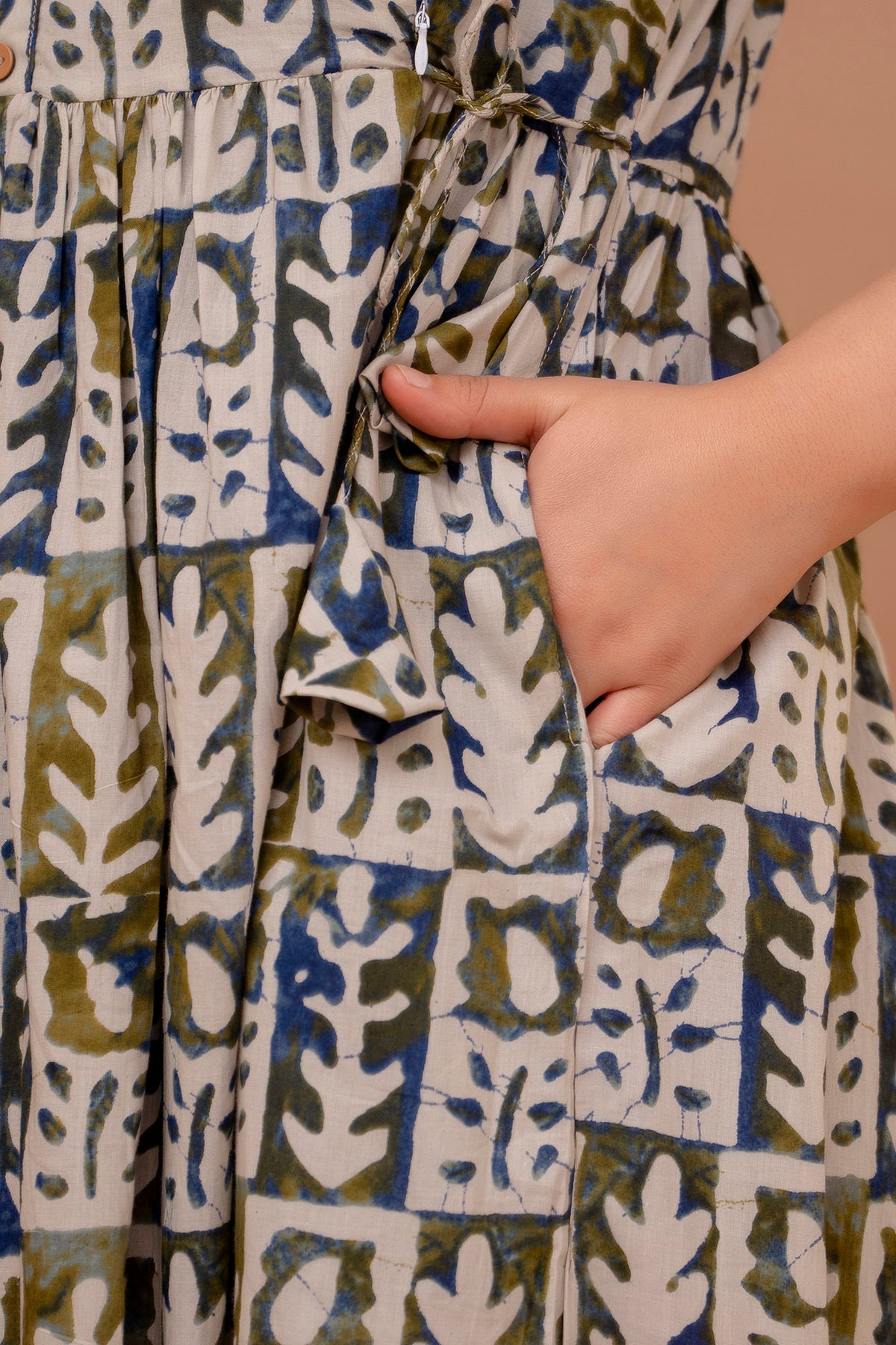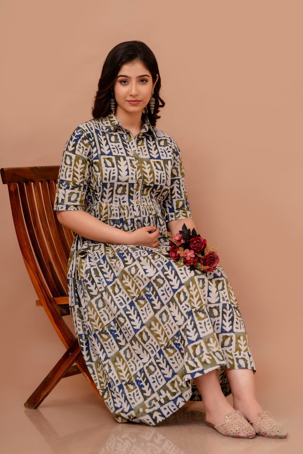 Beige Printed Pure Rayon Cotton Collar Maternity And Feeding Kurta