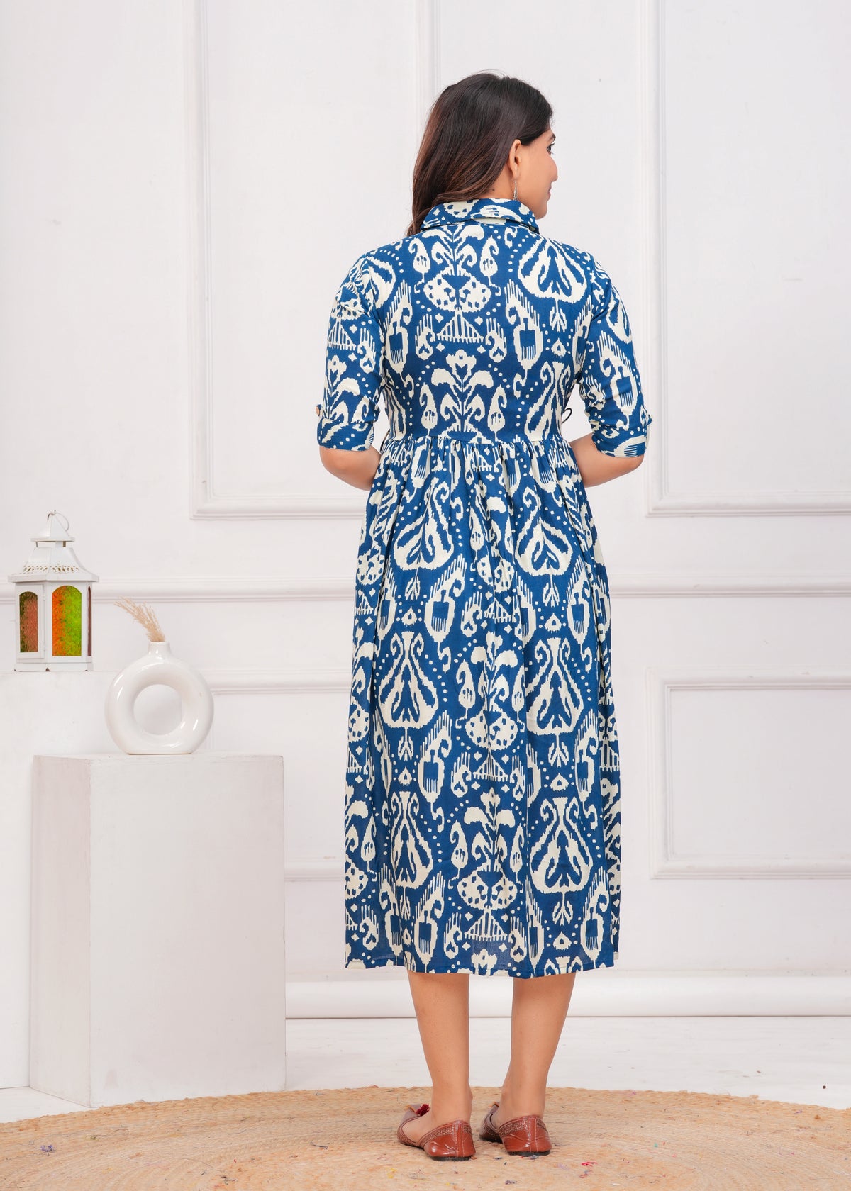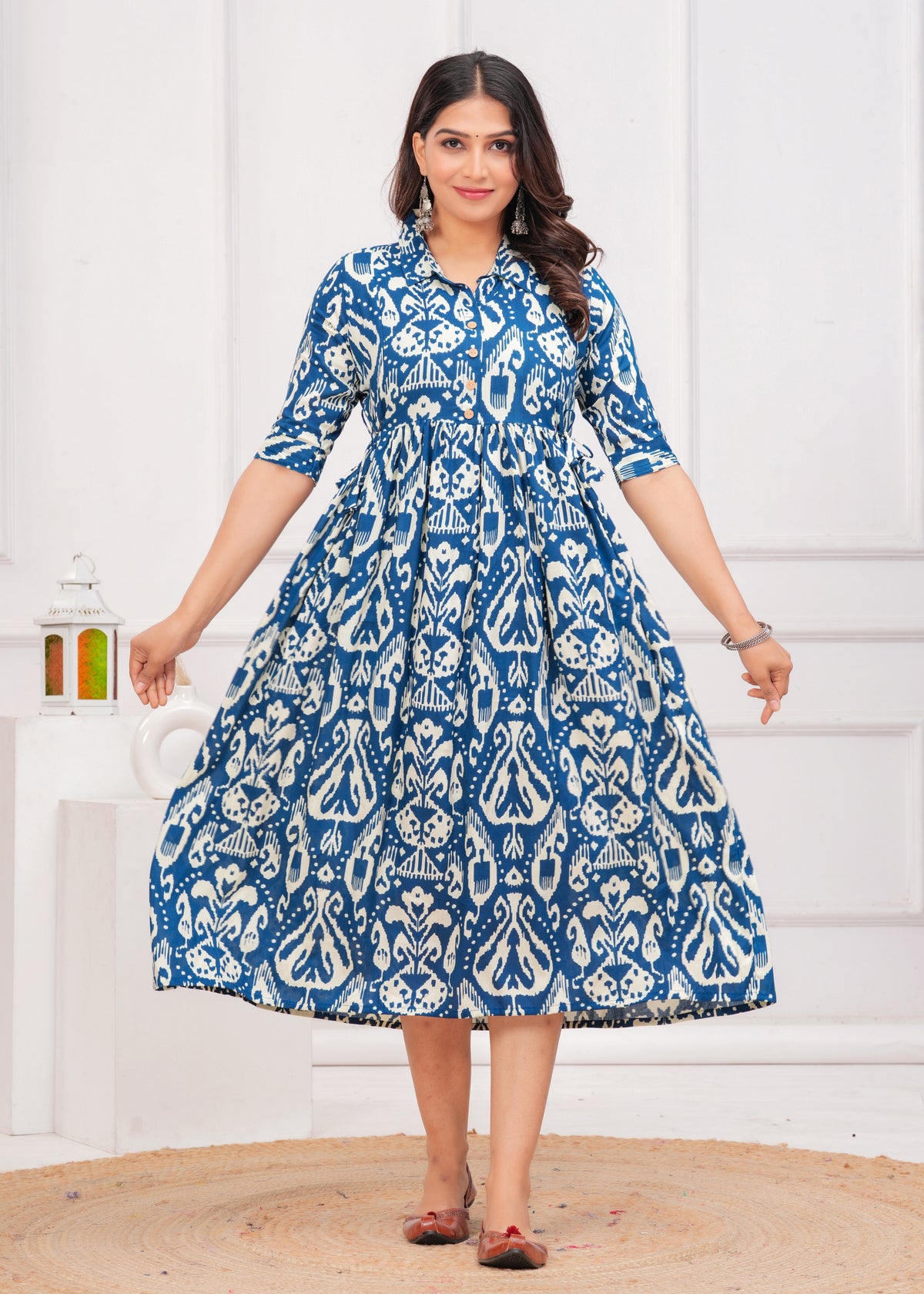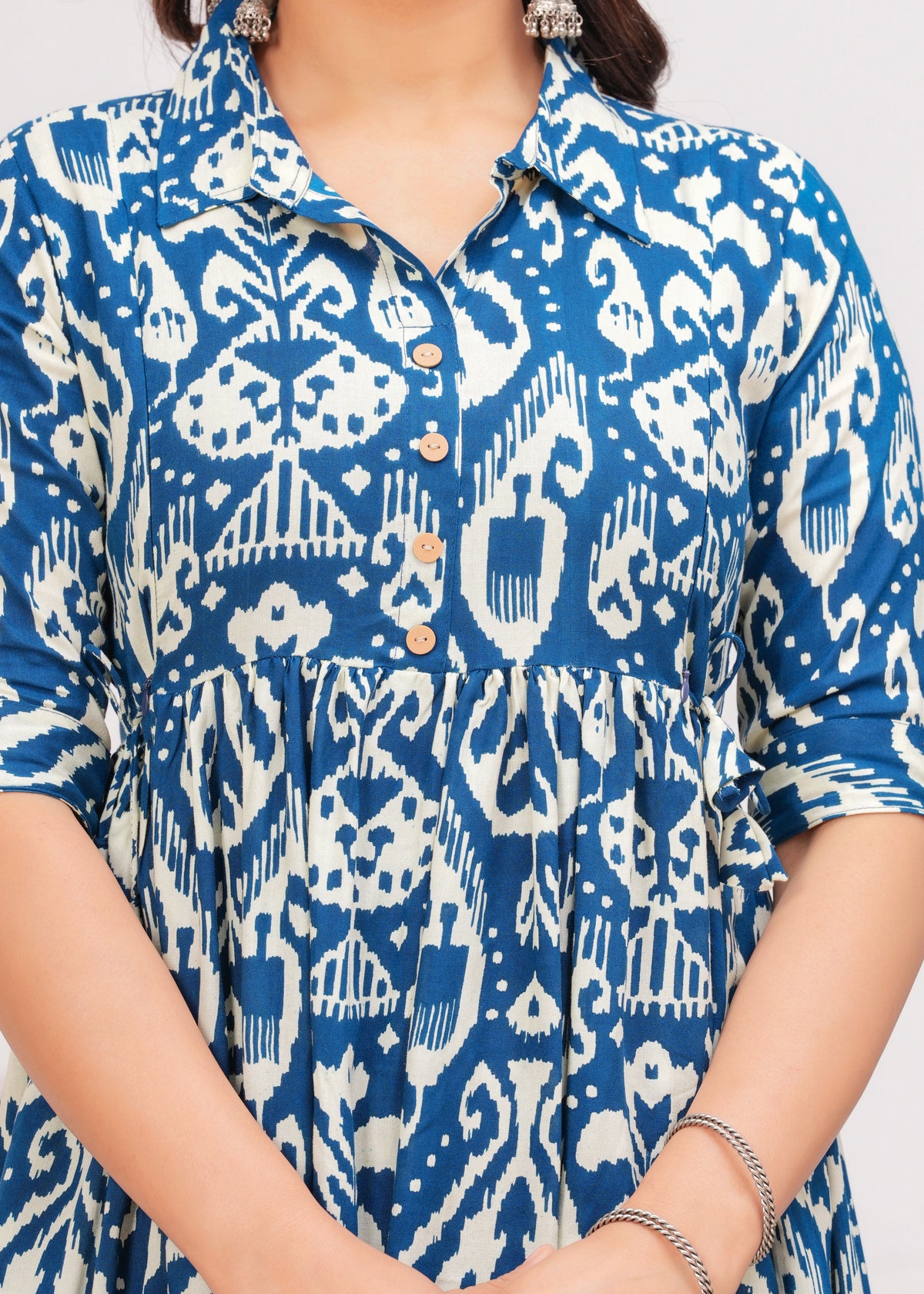 Blue Printed Pure Rayon Cotton Collor Maternity And Feeding Kurta