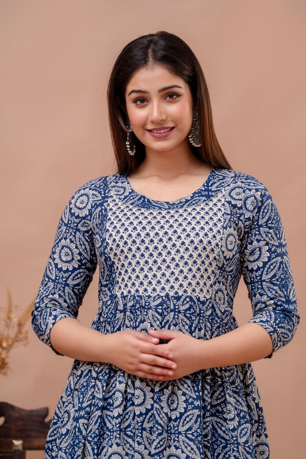 Blue Printed Pure Rayon Cotton Mateniry And Feeding Kurta