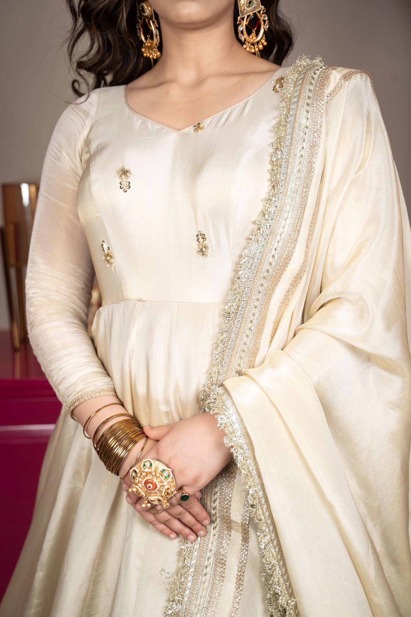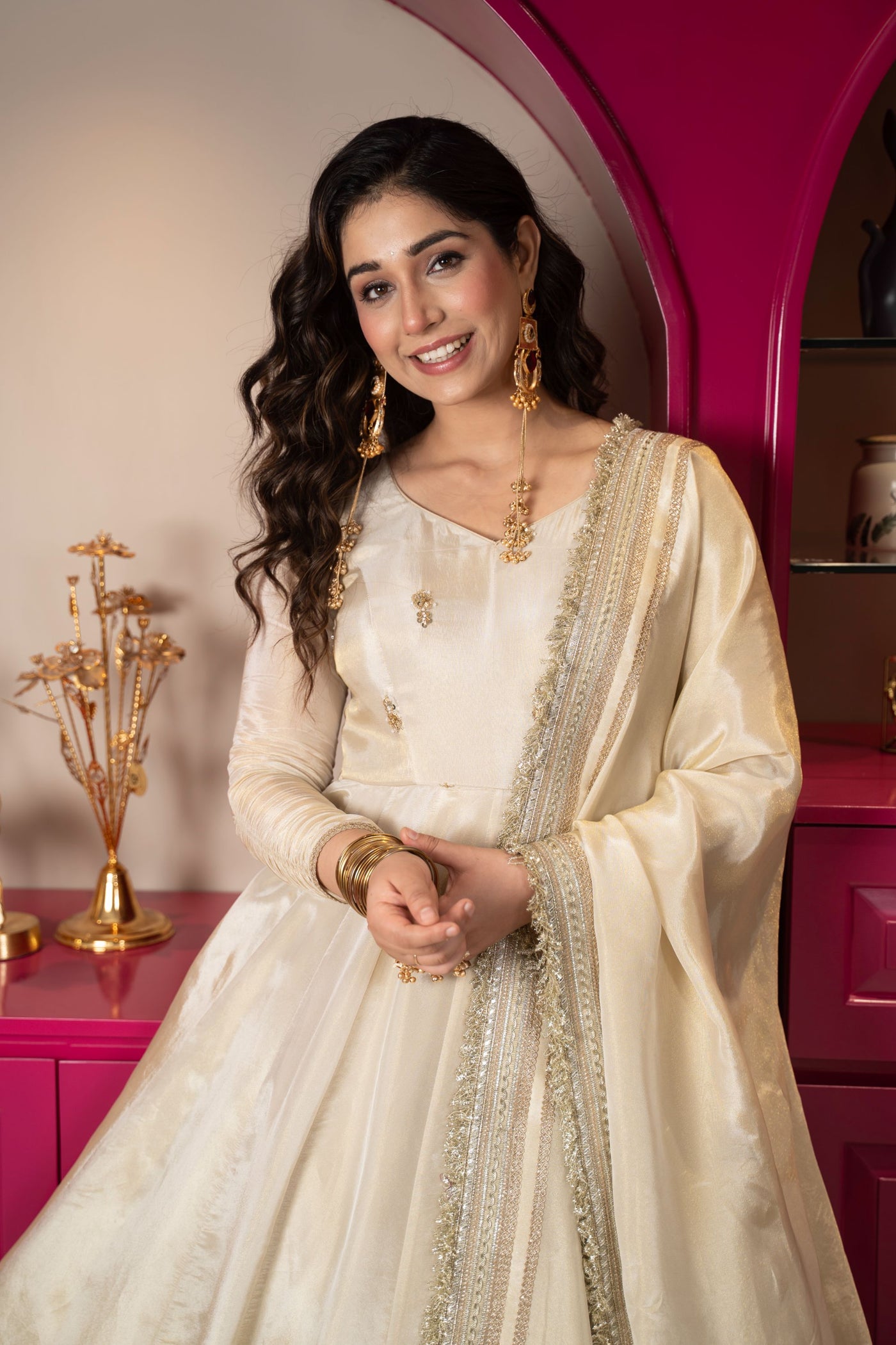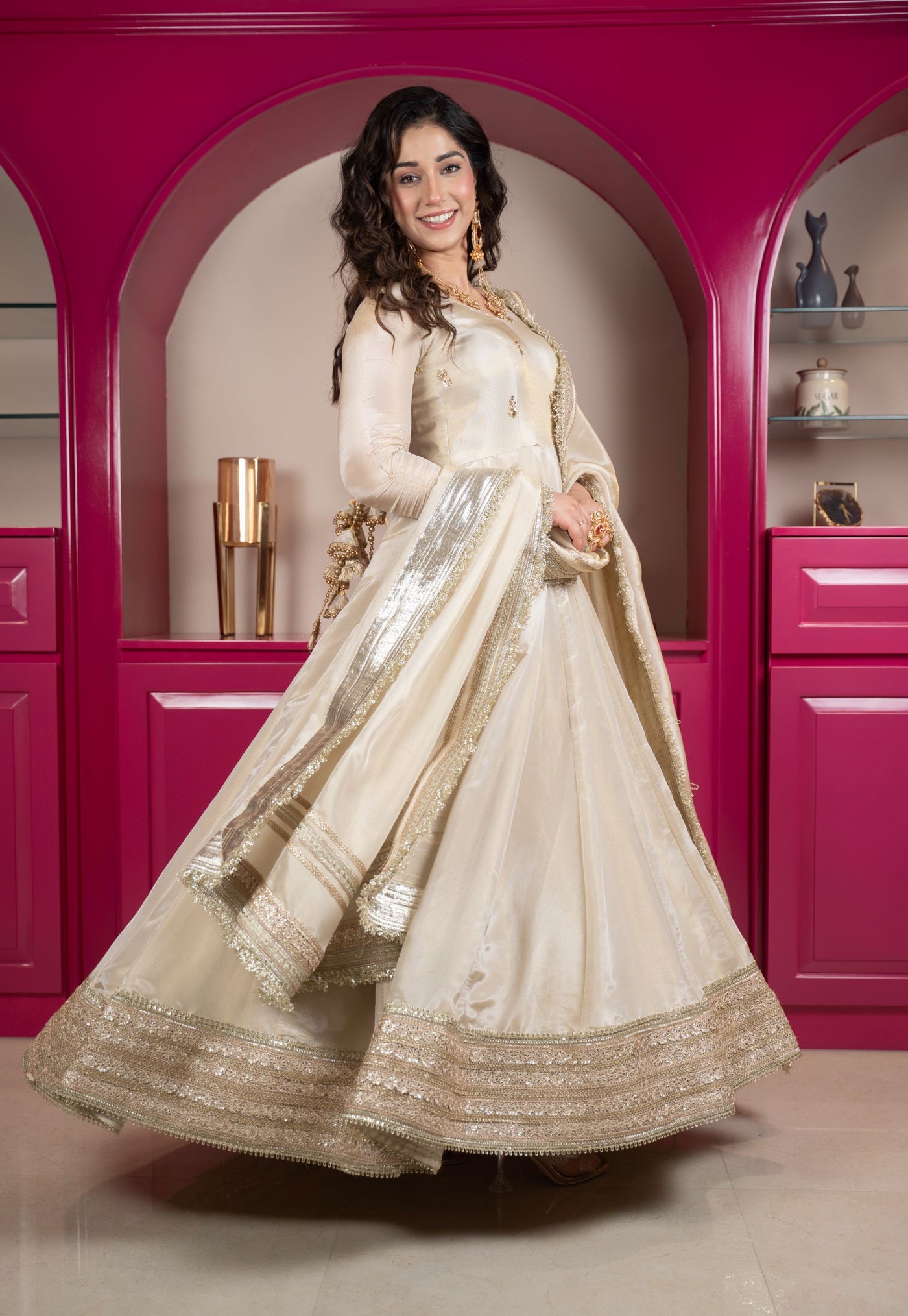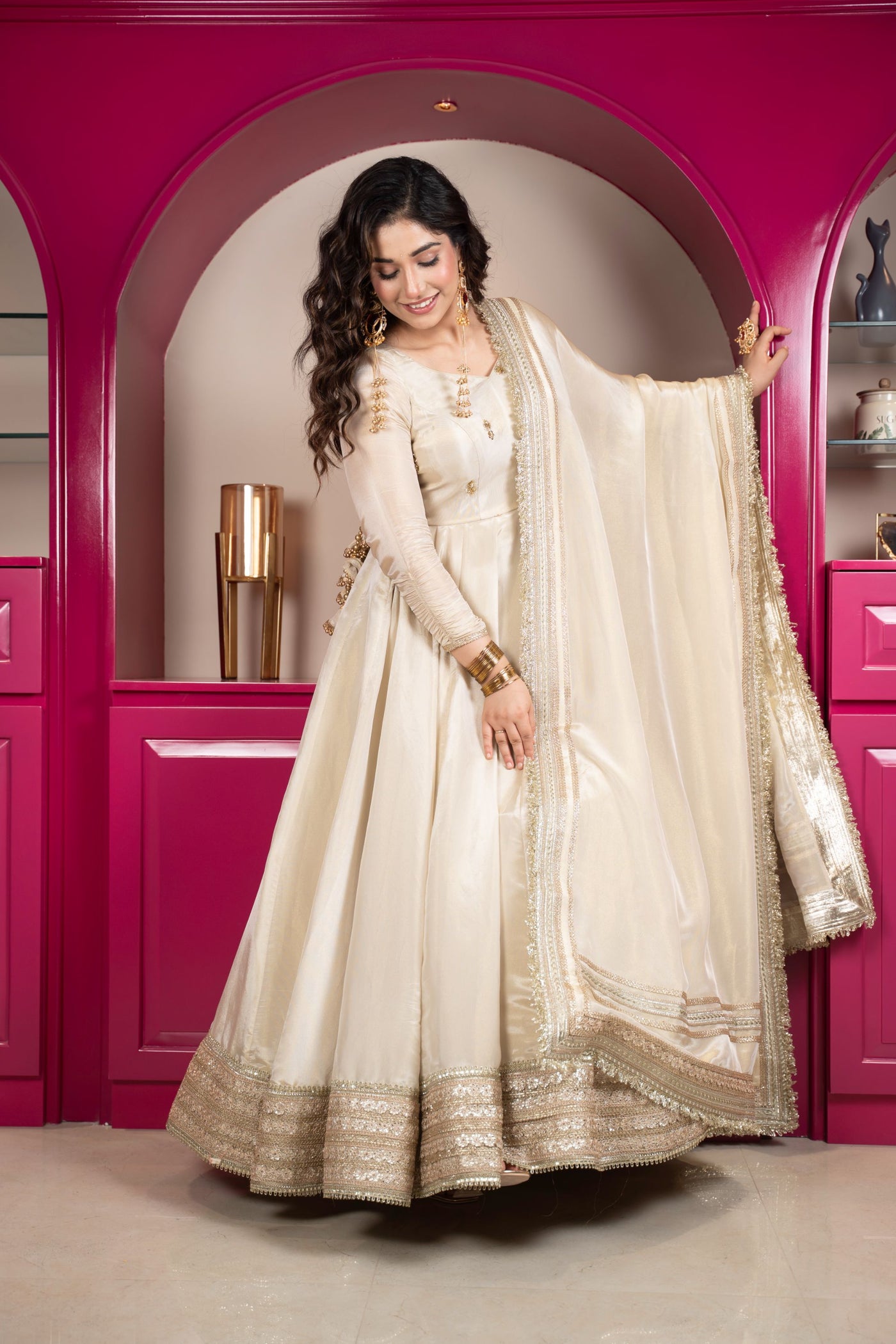Fashion4word Luxe Patola Silk Flare Dress Set with Elegant Zari Dupatta