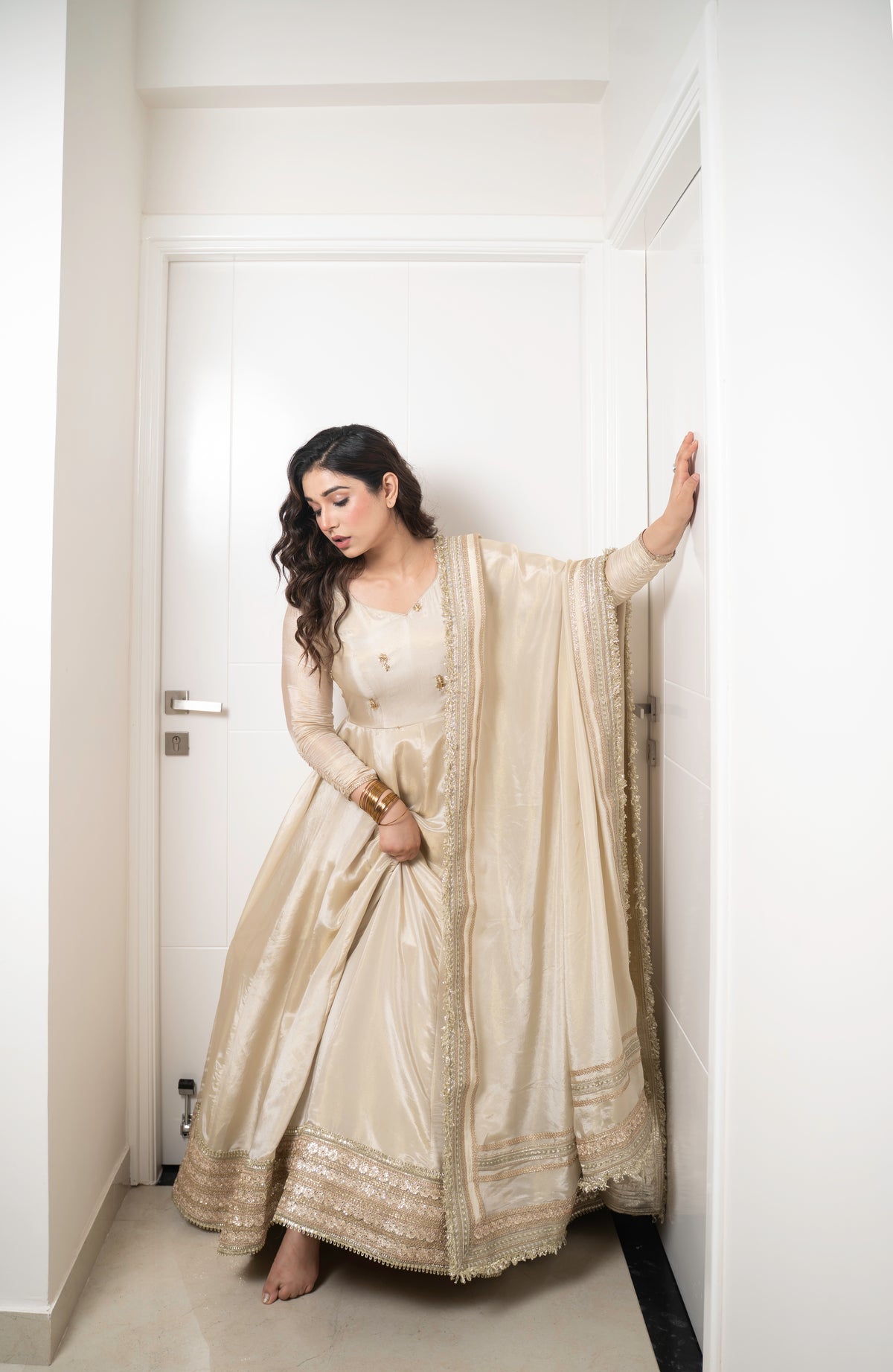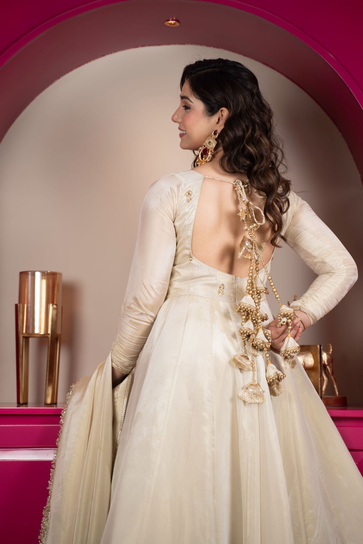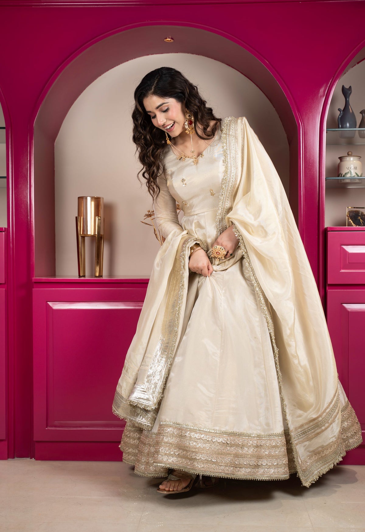 Fashion4word Luxe Patola Silk Flare Dress Set with Elegant Zari Dupatta
