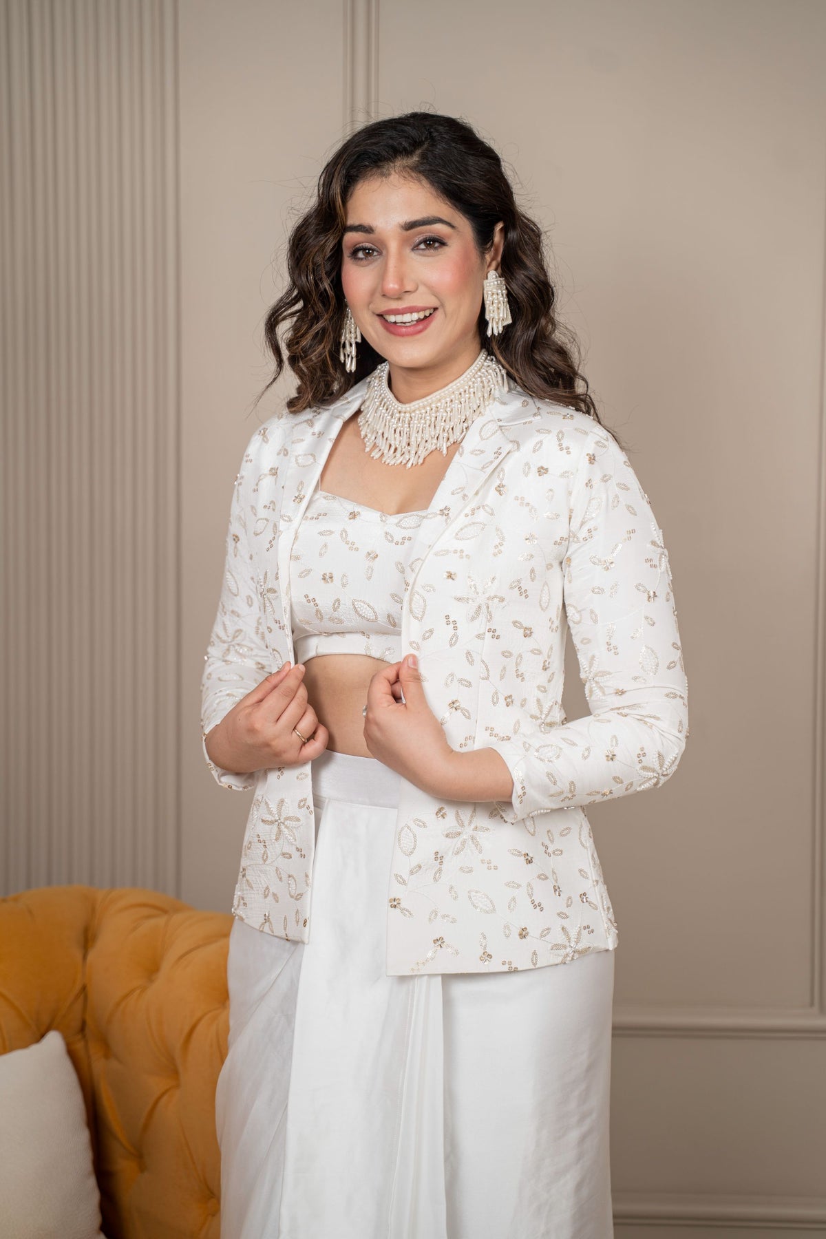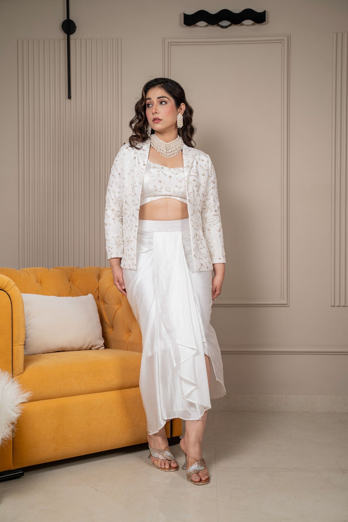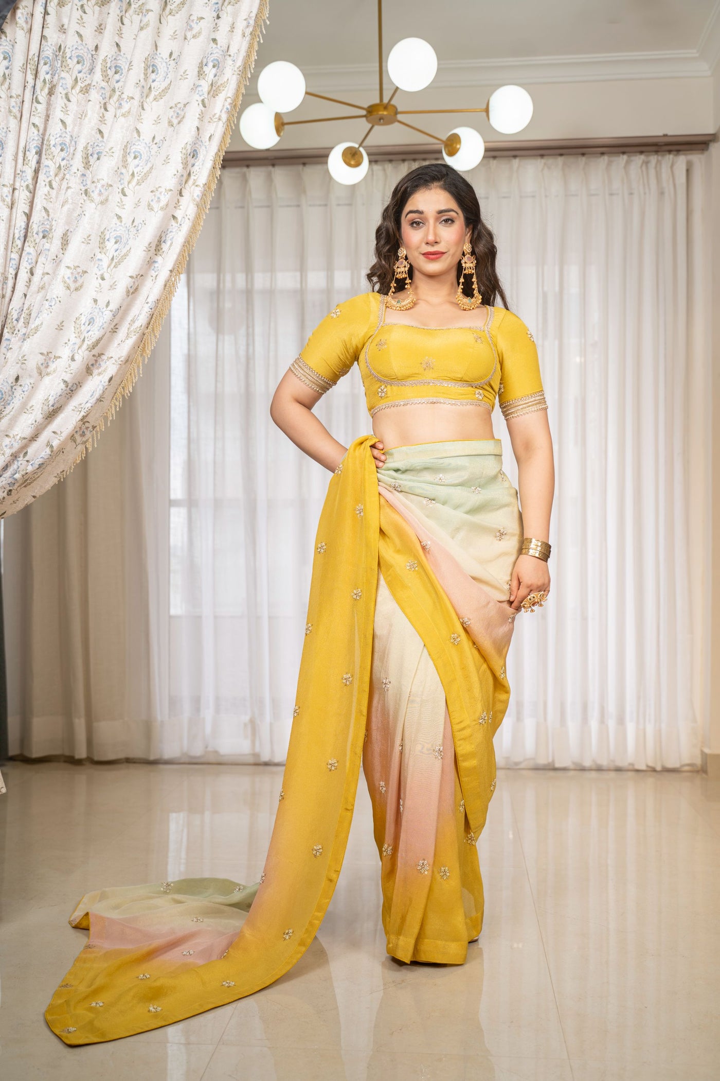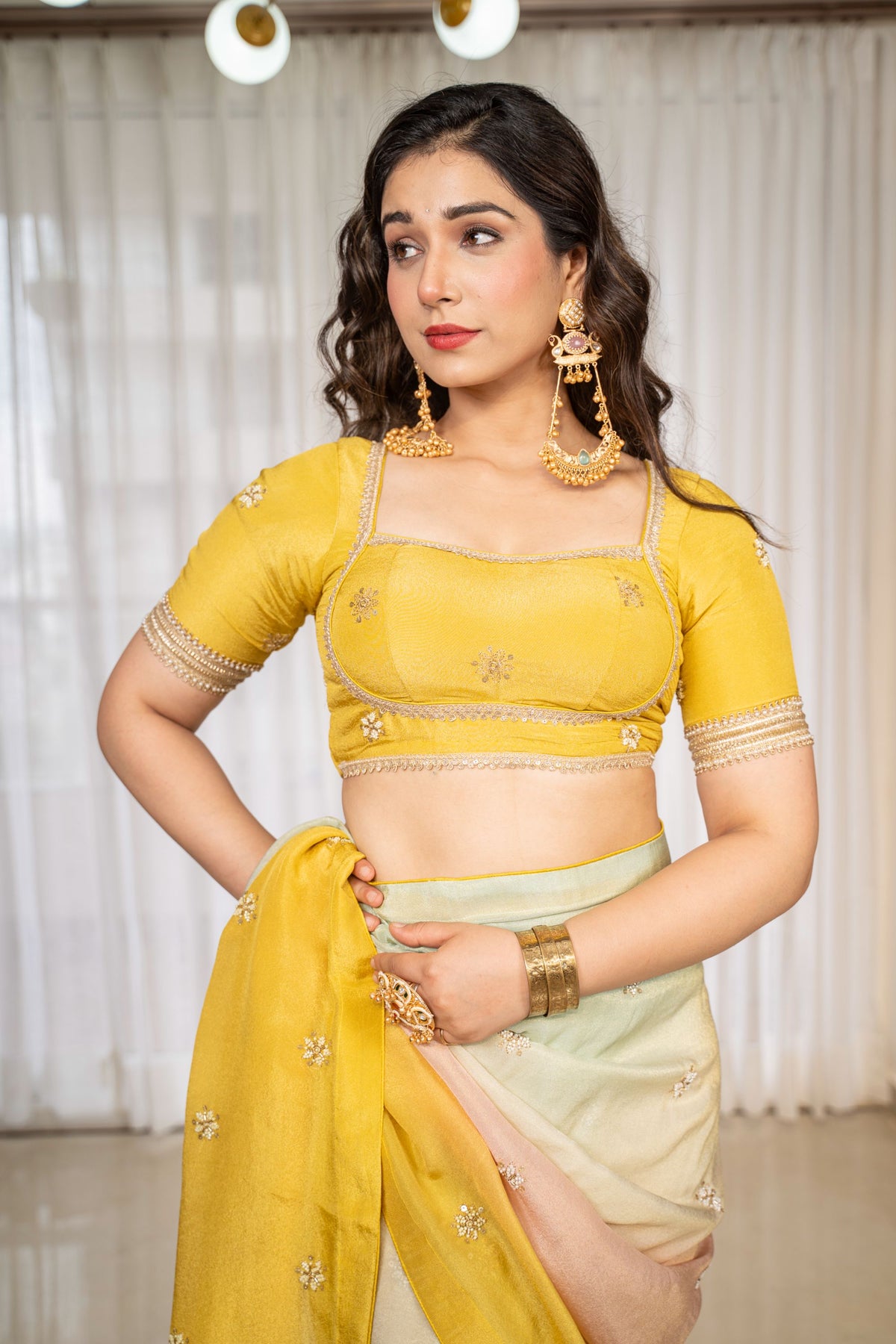 Fashion4word Luxe Patola Silk Flare Dress Set with Elegant Zari Dupatta
