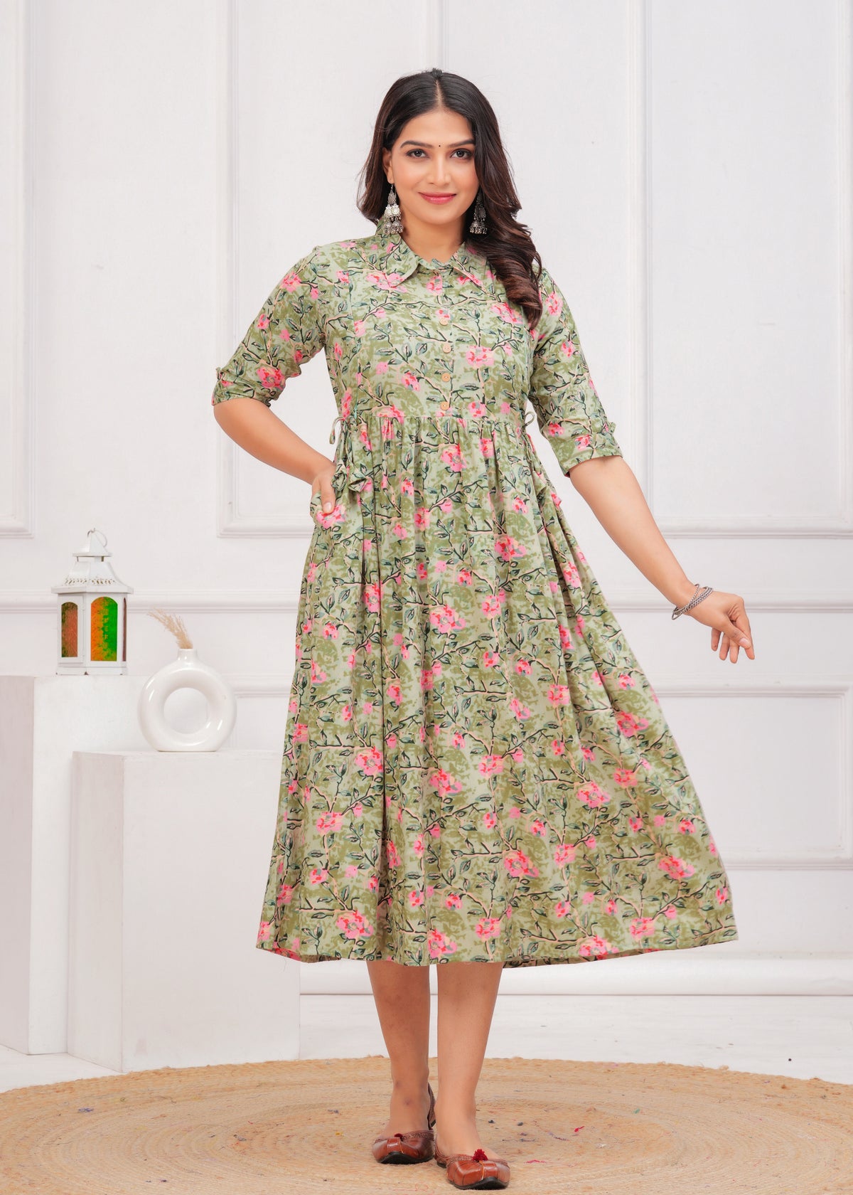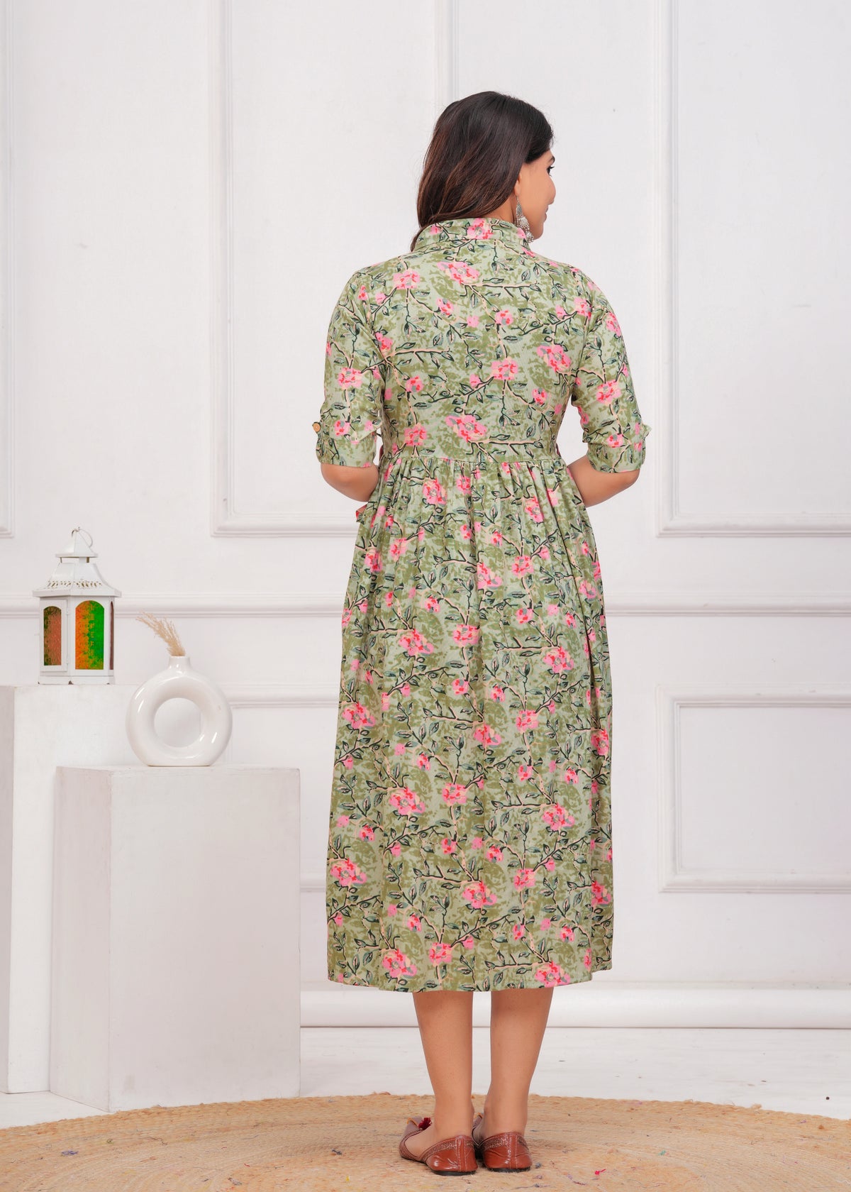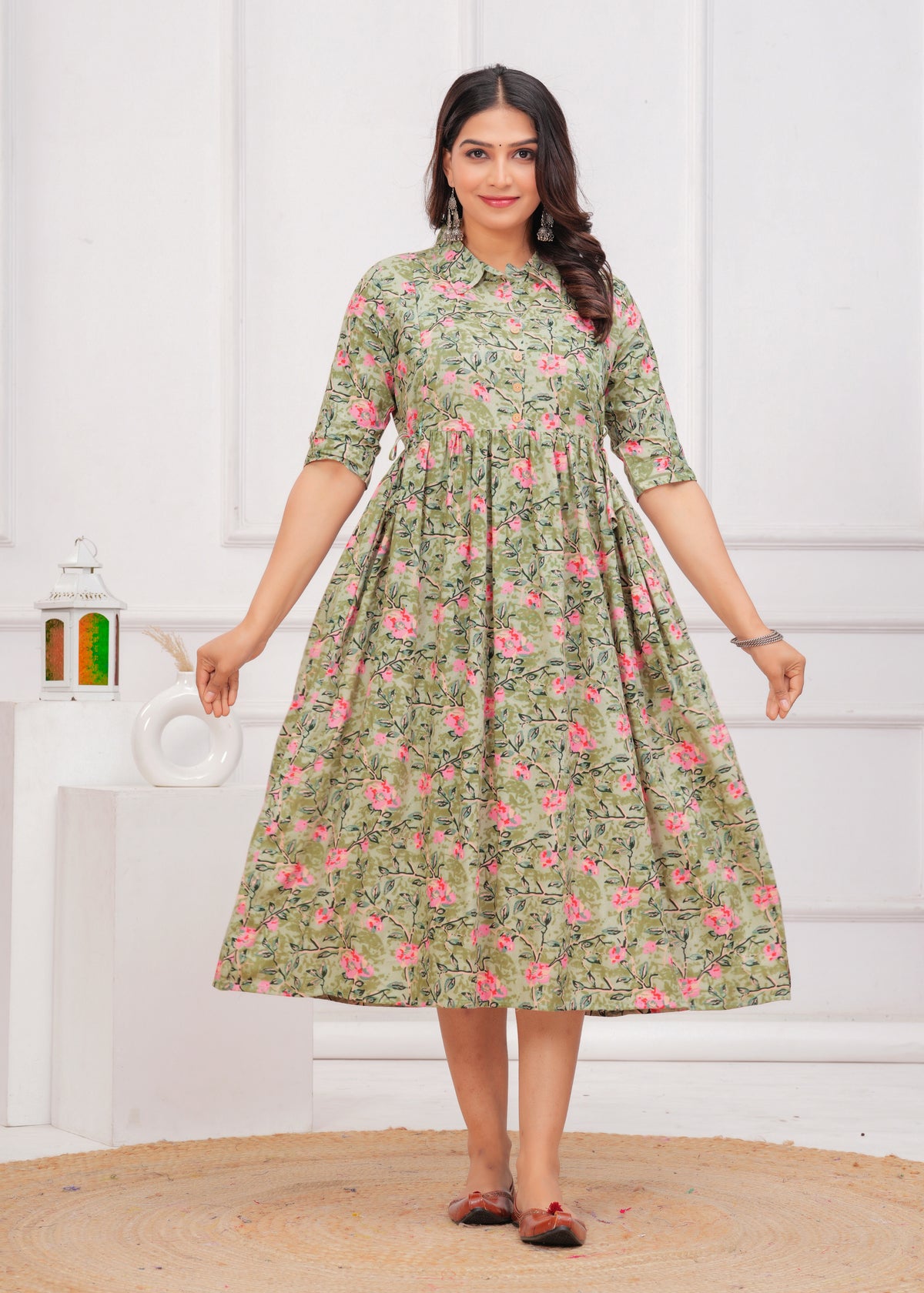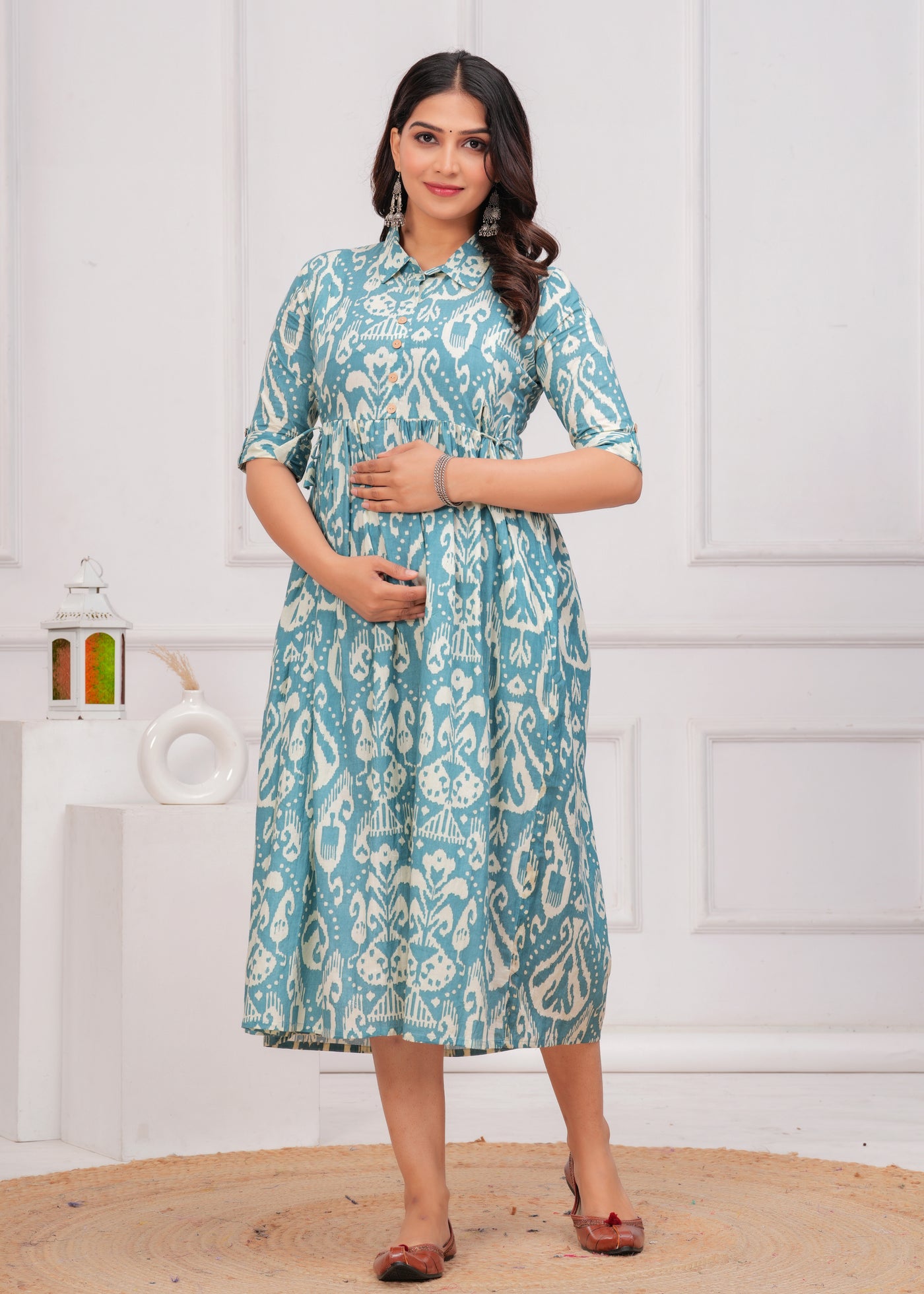 Pista Green Printed Pure Rayon Cotton Collor Maternity And Feeding Kurta - S / Pista Green
