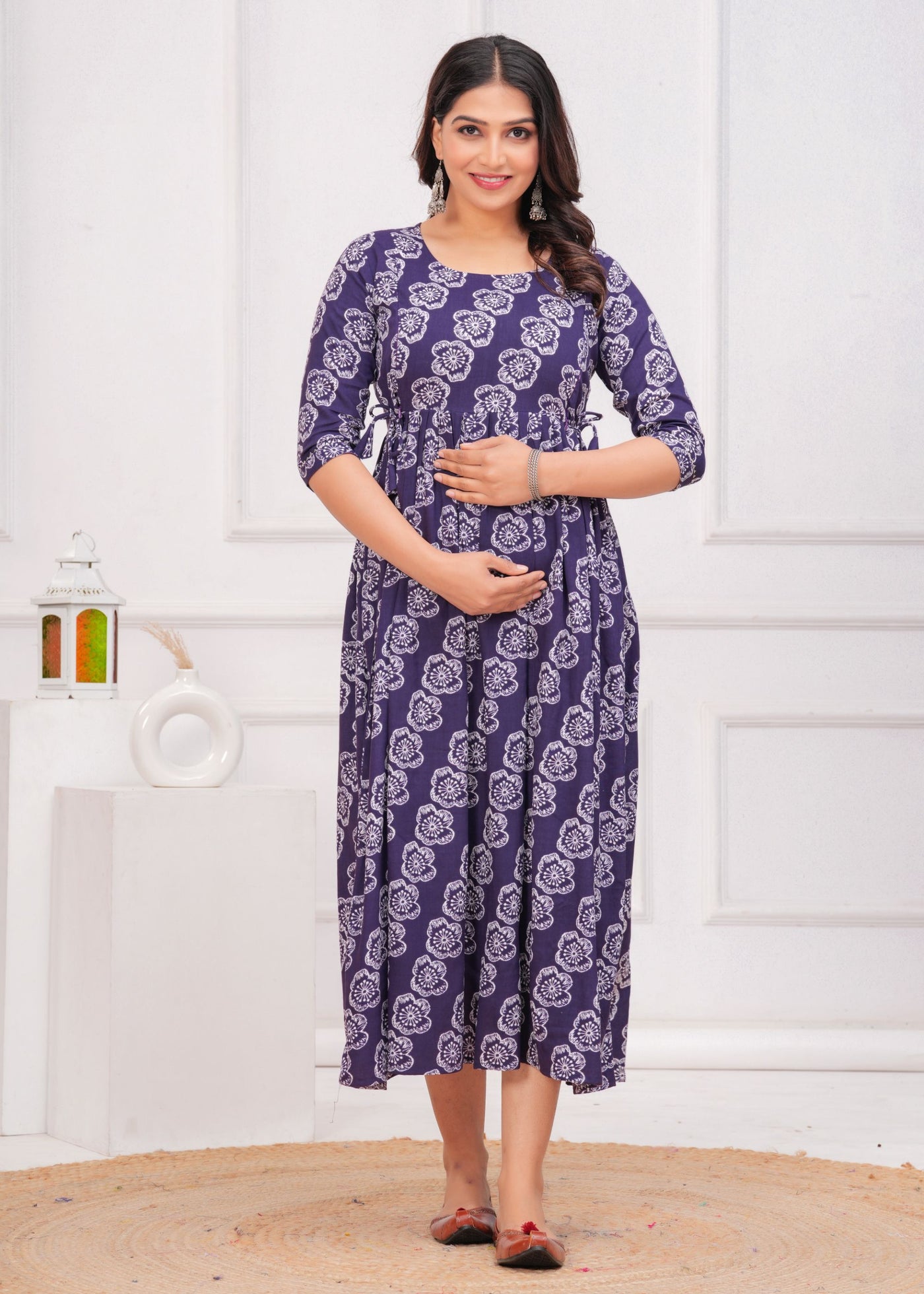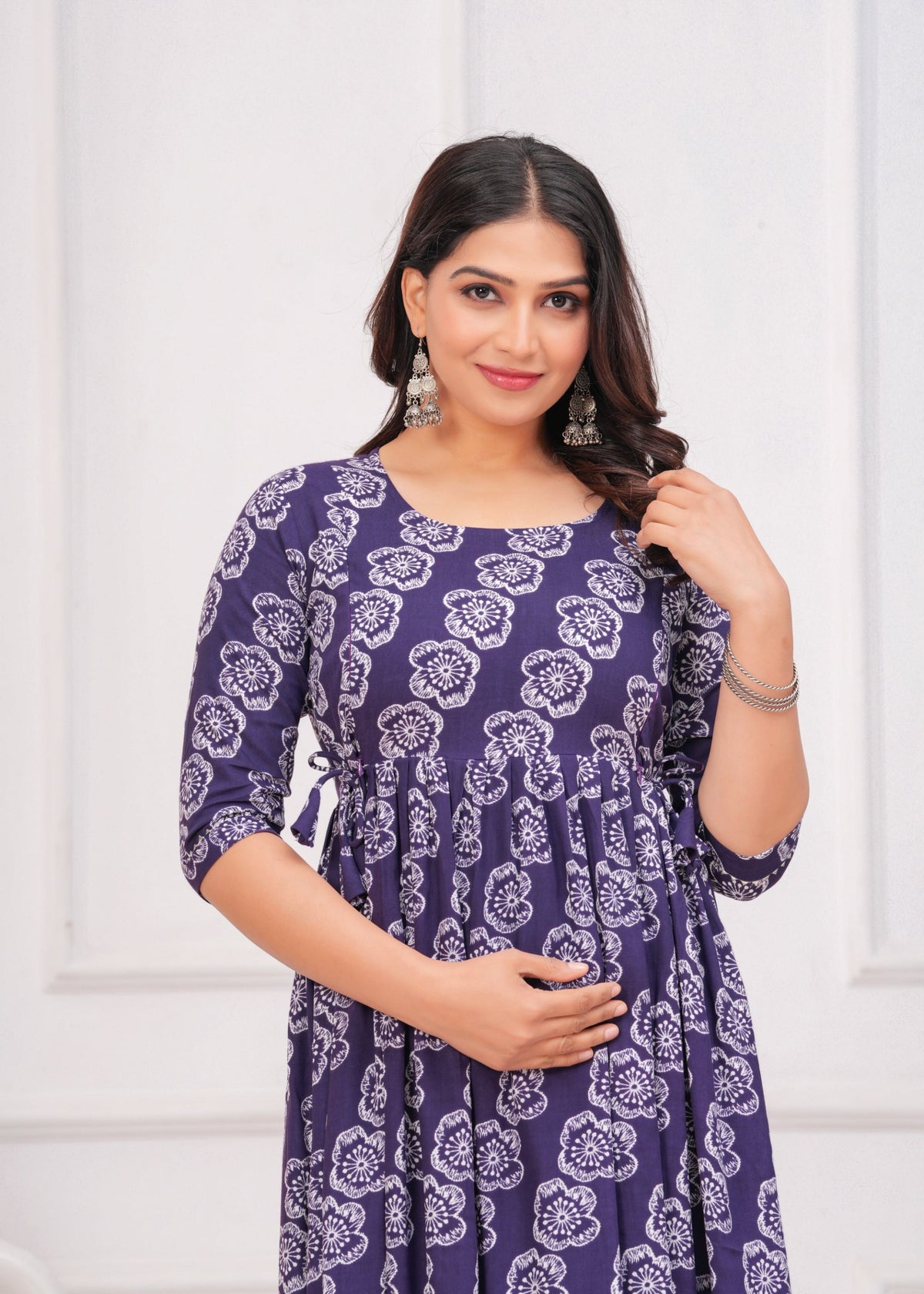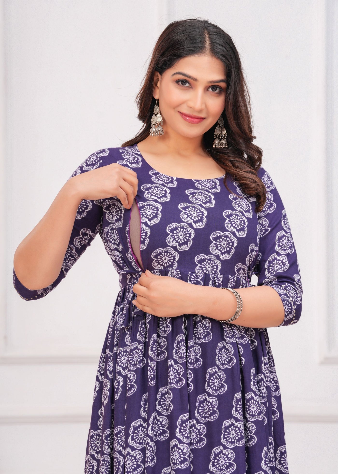 Purple Printed Pure Rayon Cotton Mateniry And Feeding Kurta