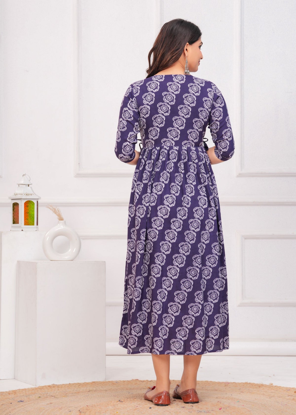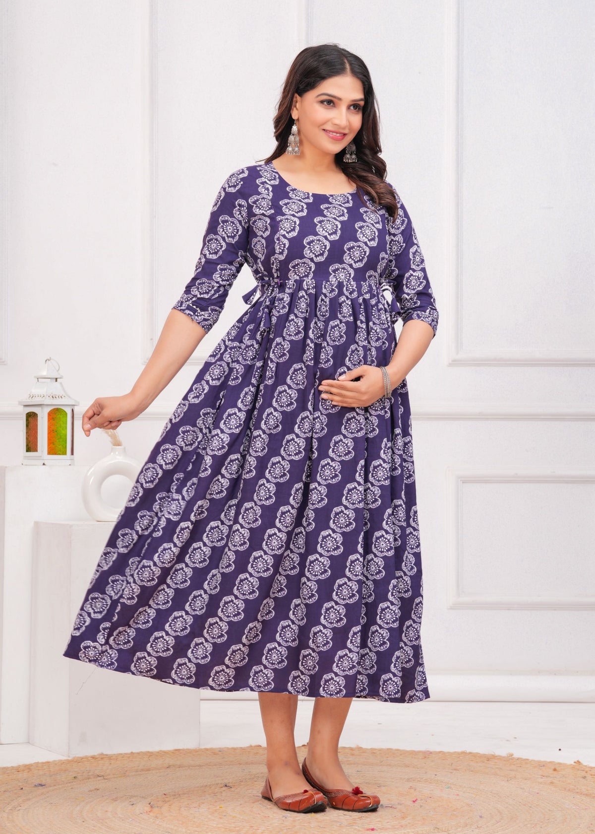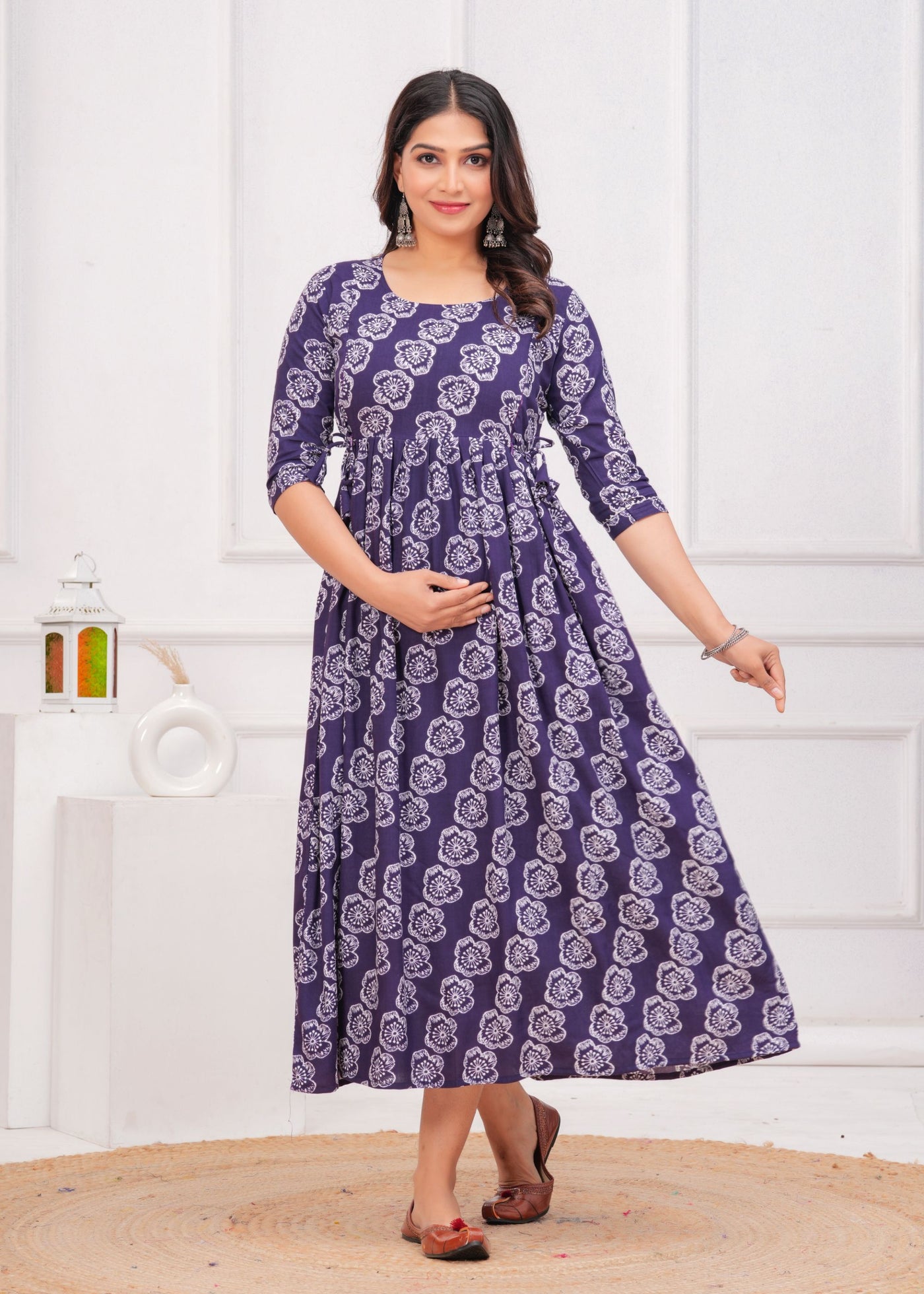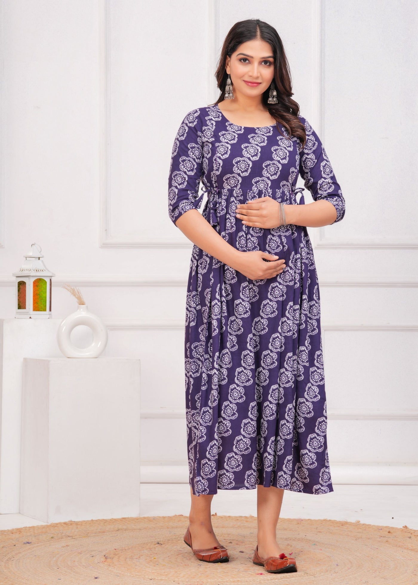 Purple Printed Pure Rayon Cotton Mateniry And Feeding Kurta