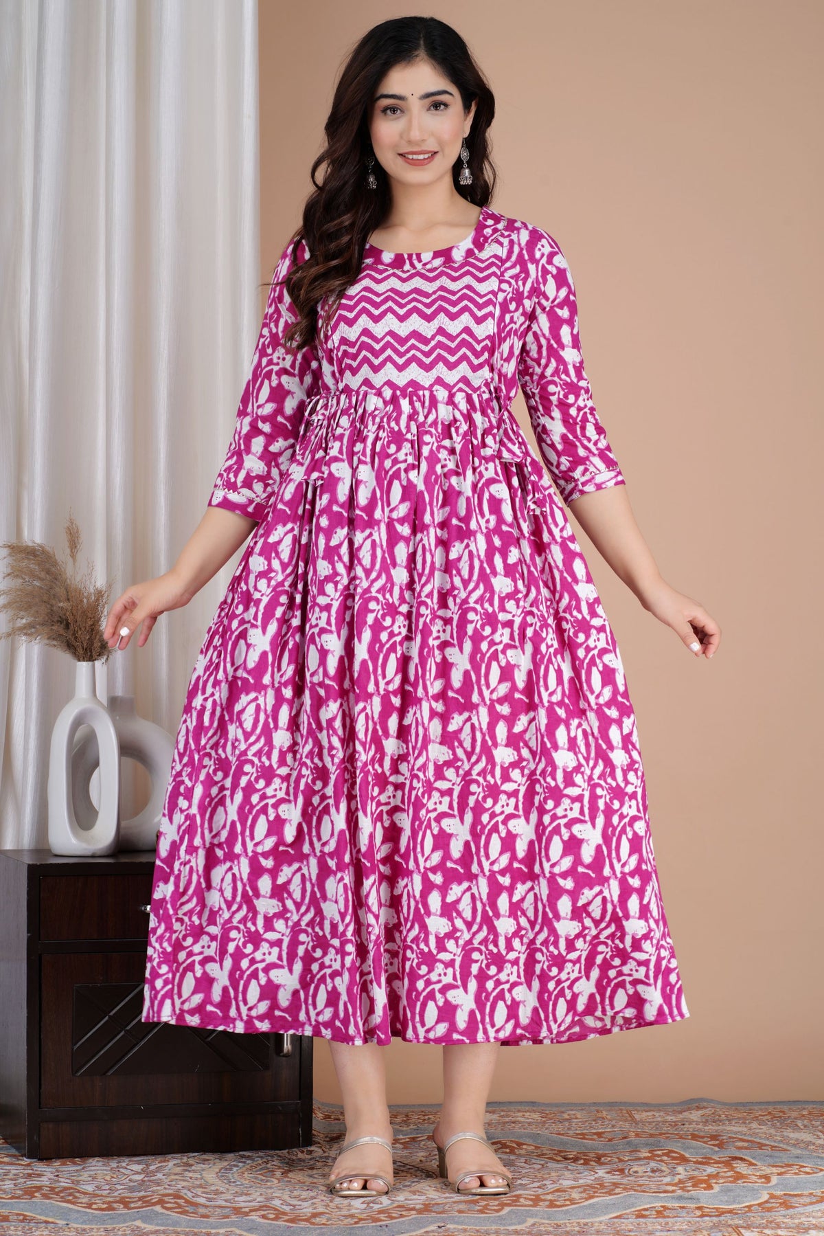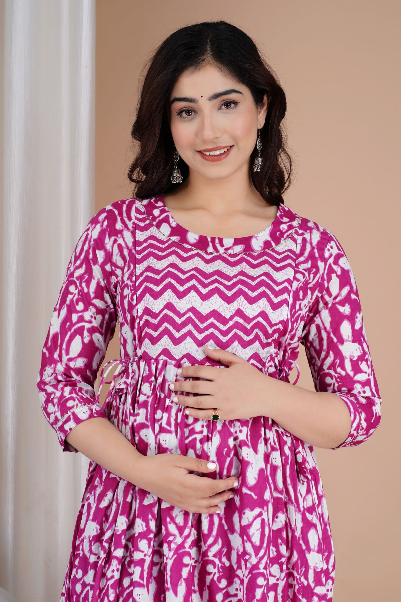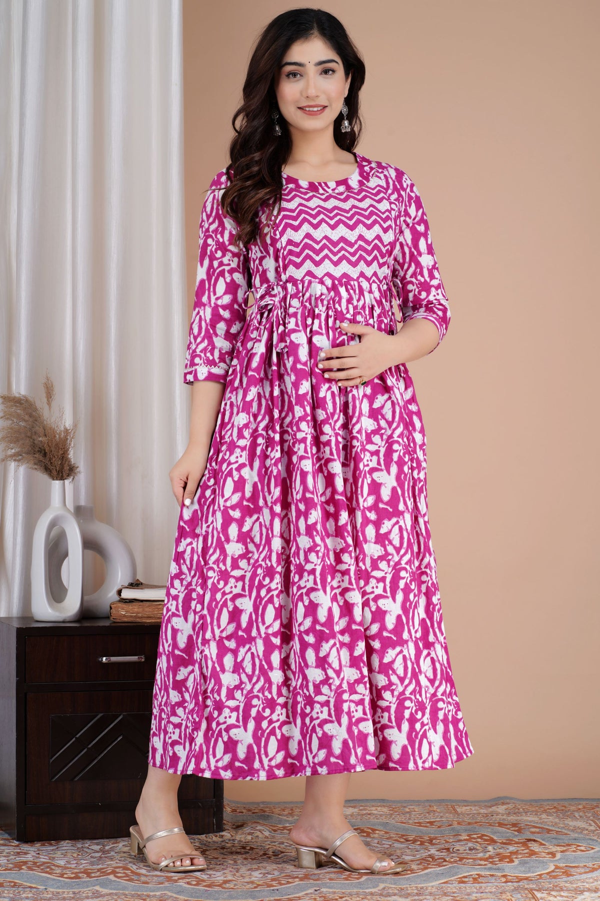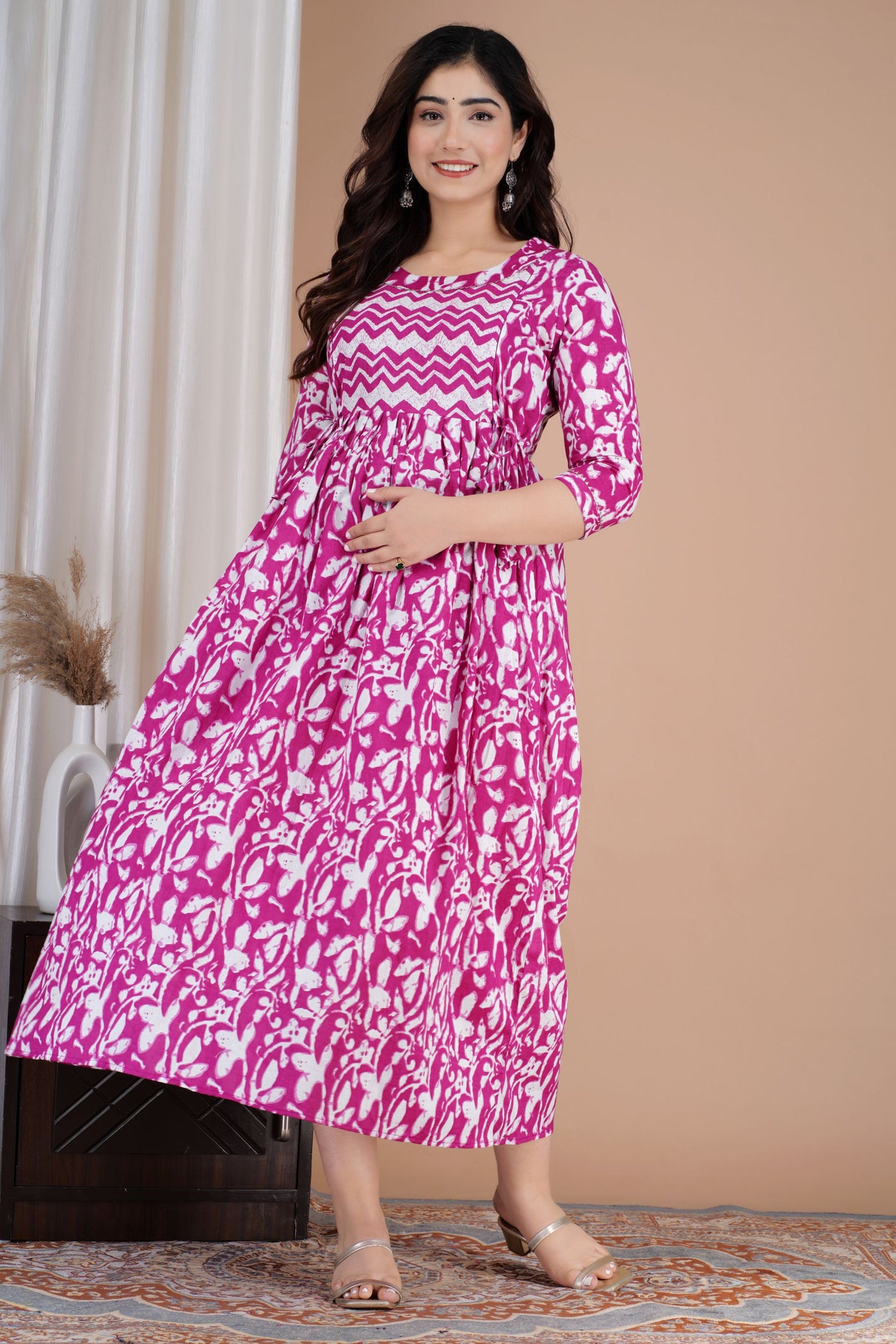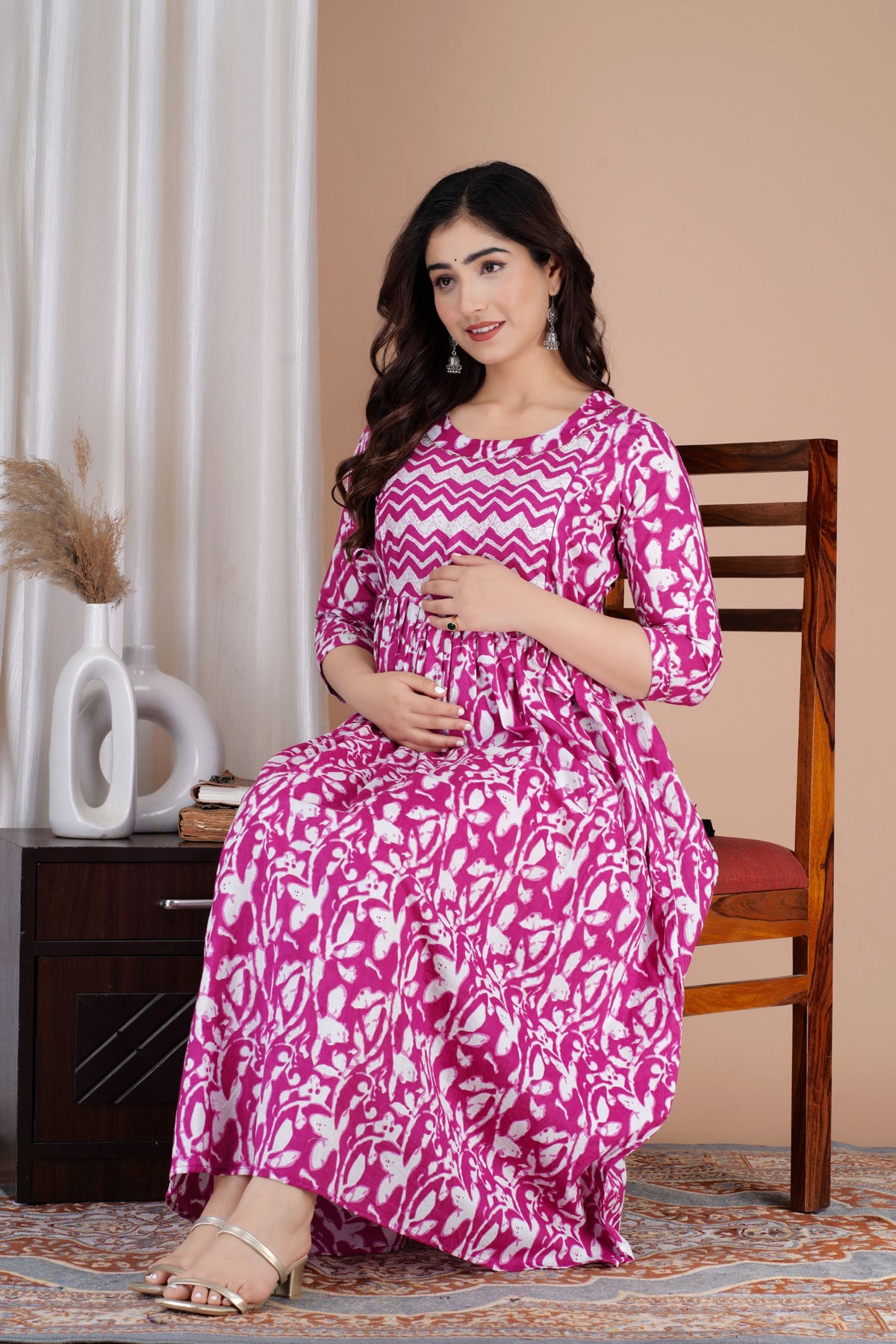 Rani Pink Printed Pure Rayon Mateniry And Feeding Kurta