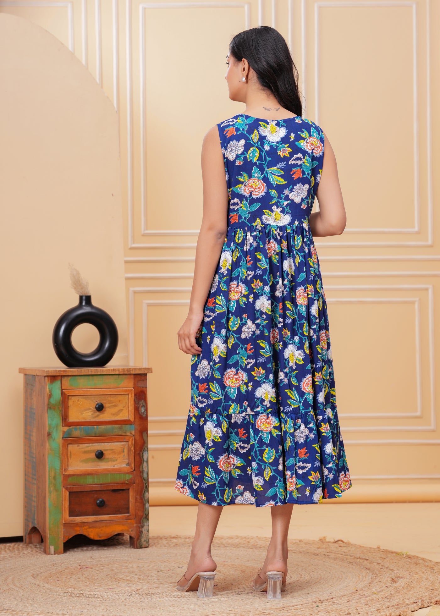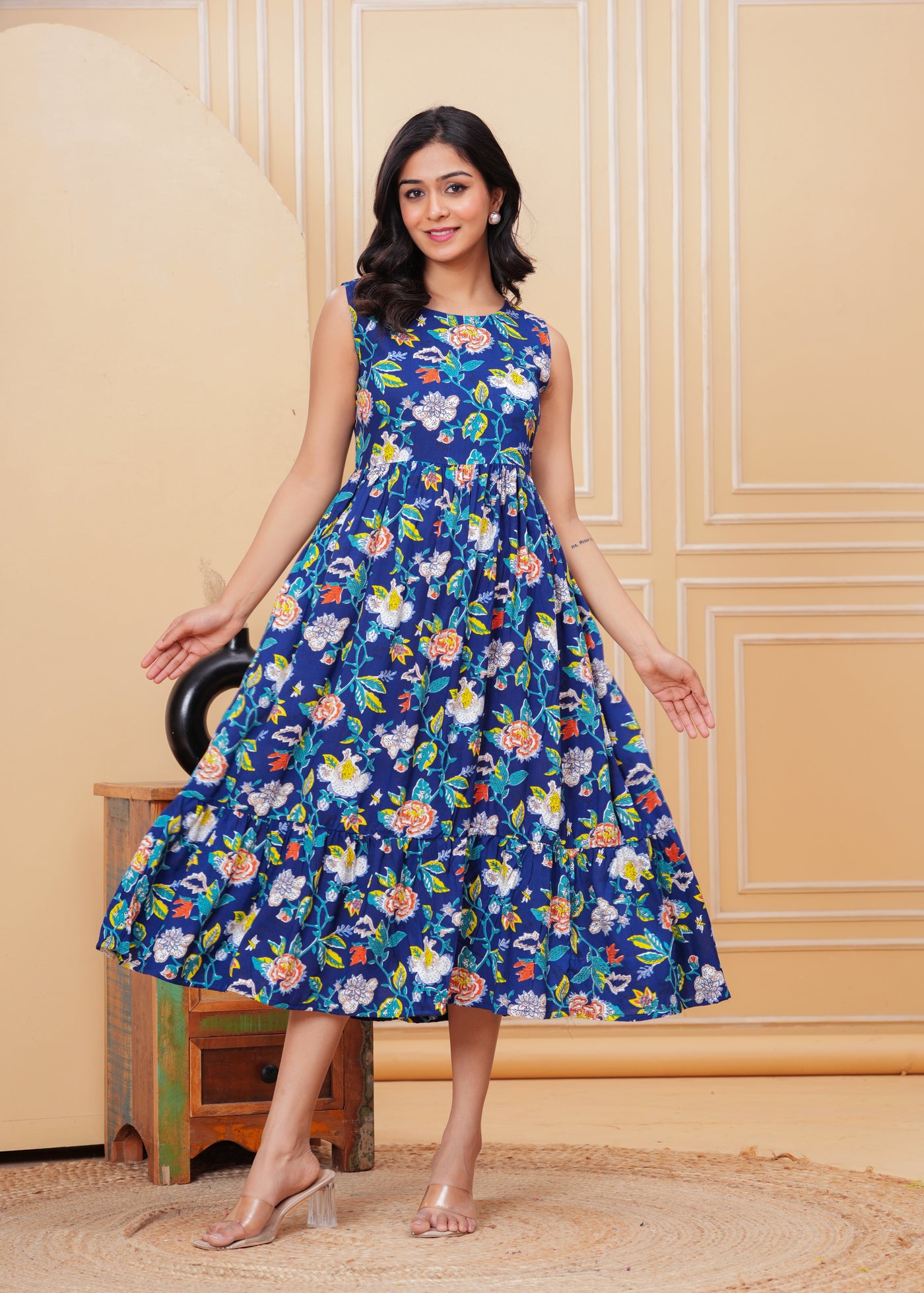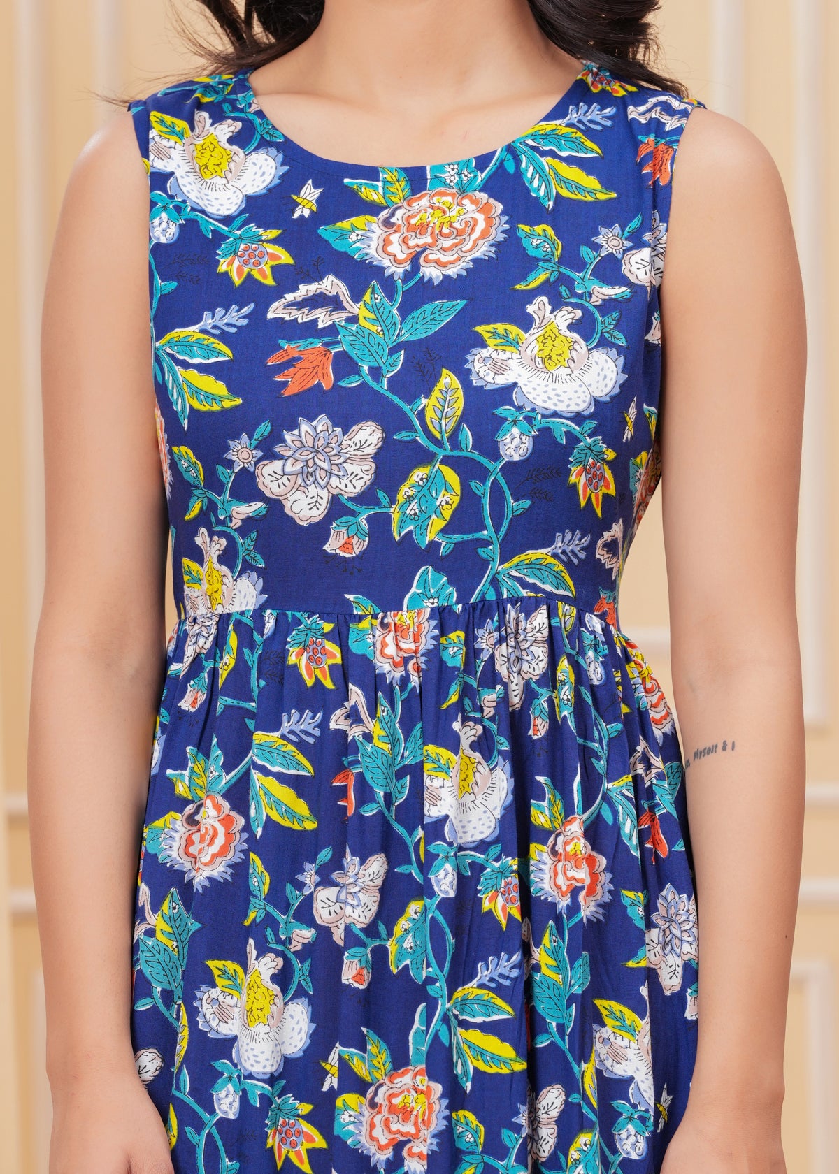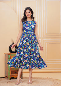 Women’s Blue Ikat Sleeveless Flared Dress